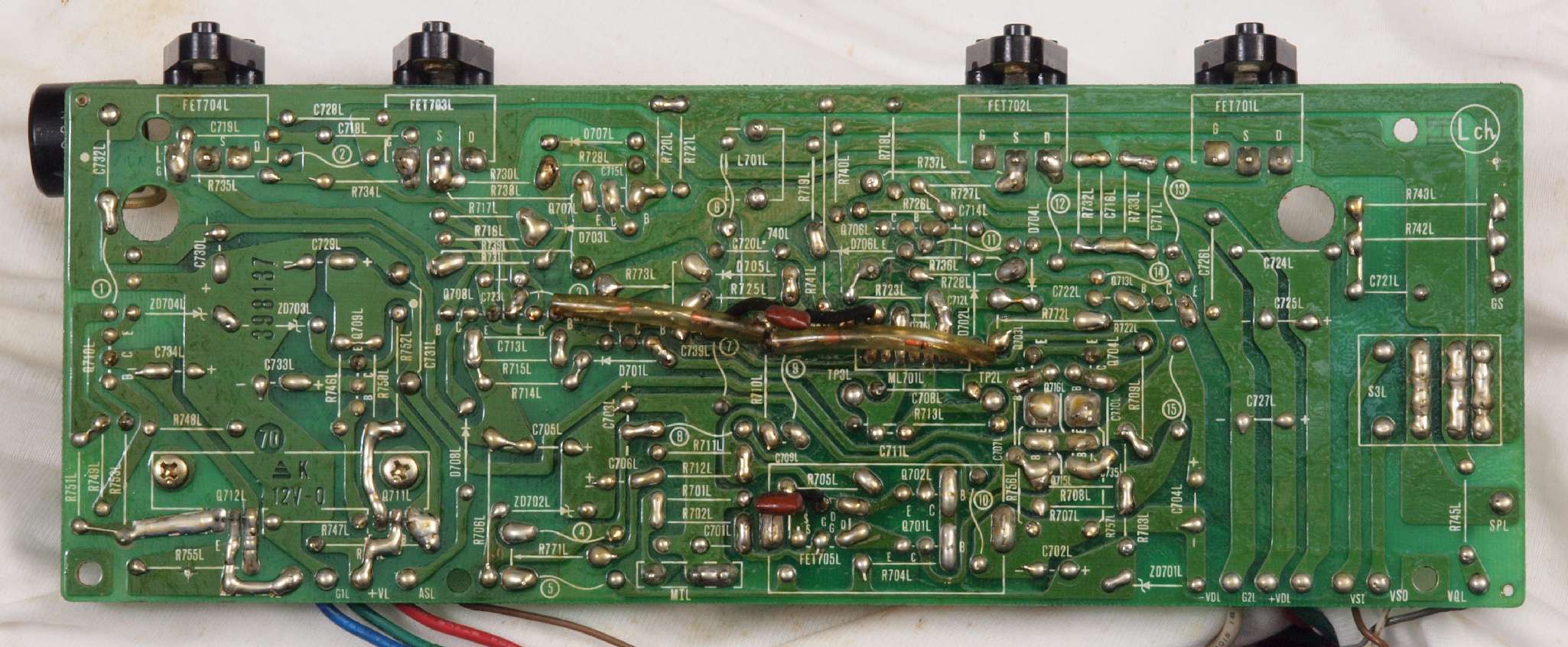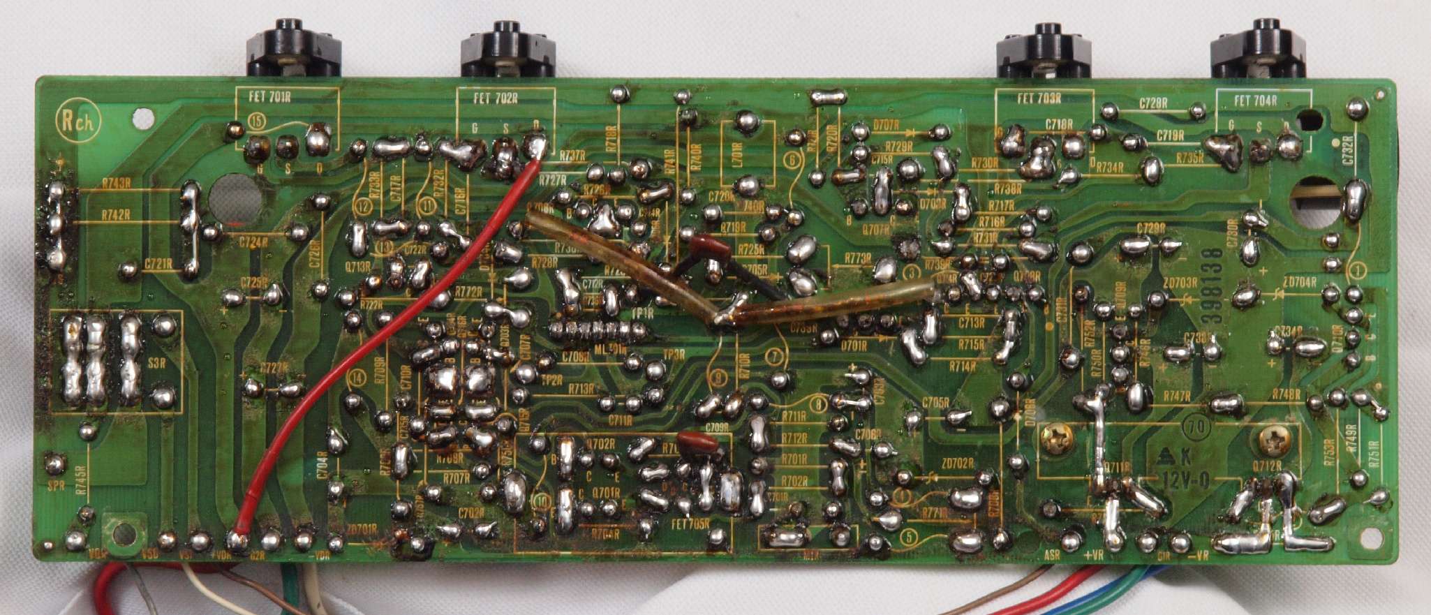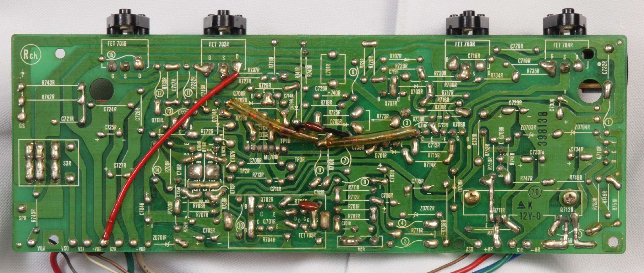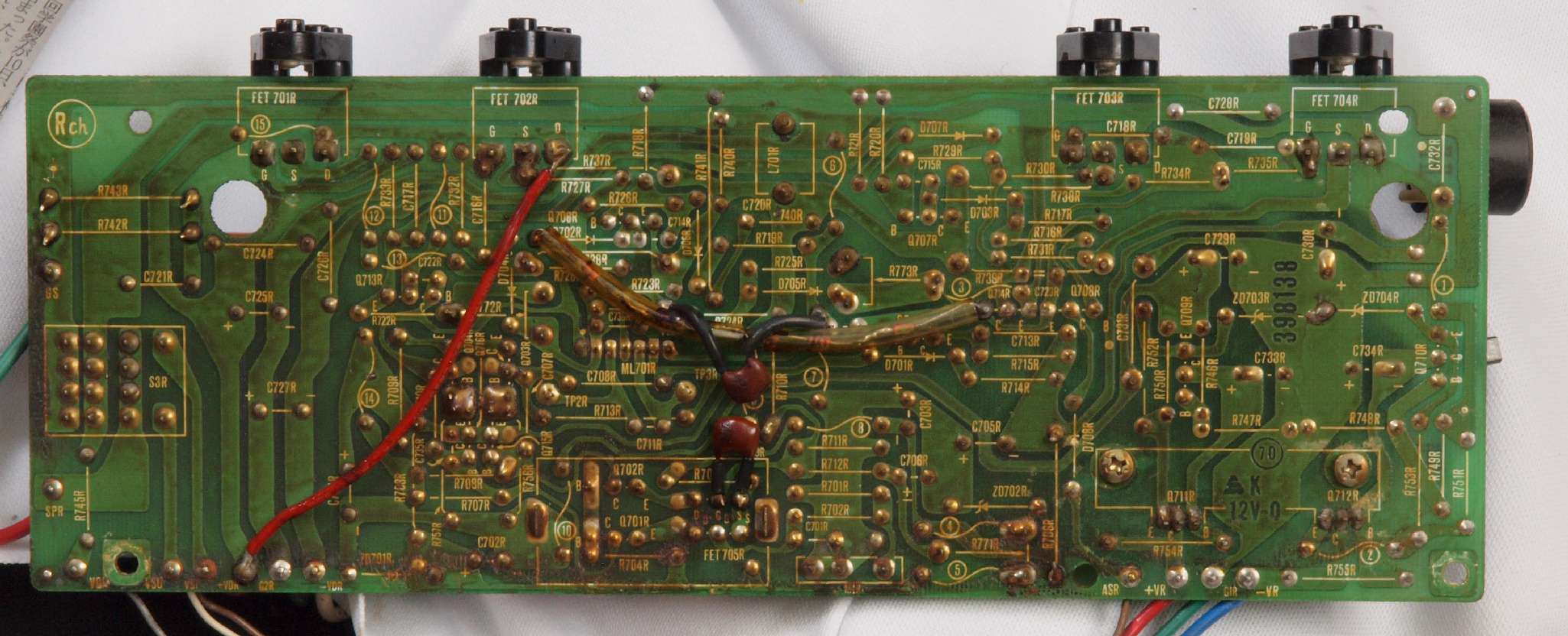 | C. 修理状況。 画像をクリックすると、大きく(横幅2050ドット)表示されます。 C11. 修理前 R側ドライブ基板 |