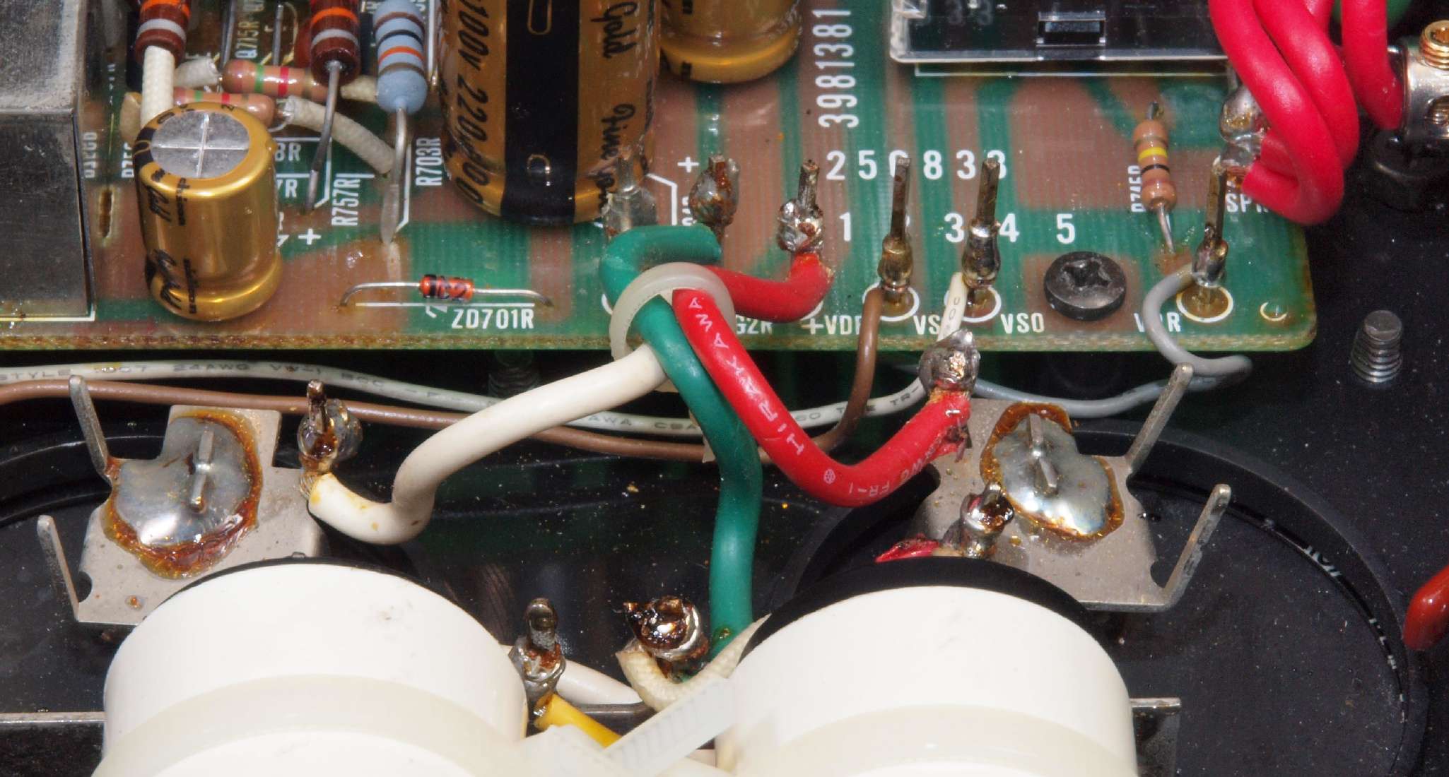 | CA5. 修理前 R側ドライブ基板−電源基板へのラッピング線 |