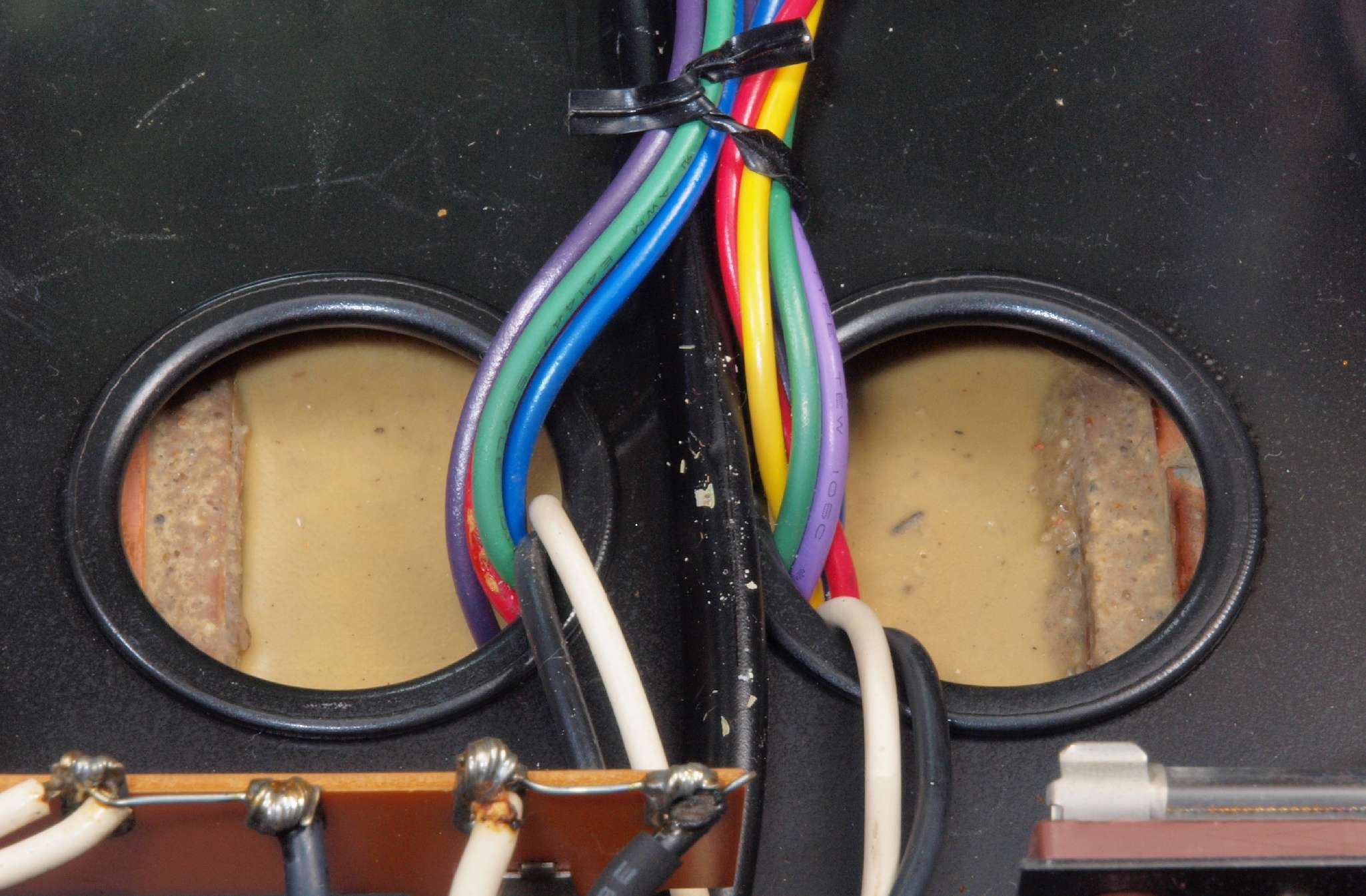 | A32. 点検中 電源トランスの詰め物を見る。 変色、ヒビ割れも無。 |