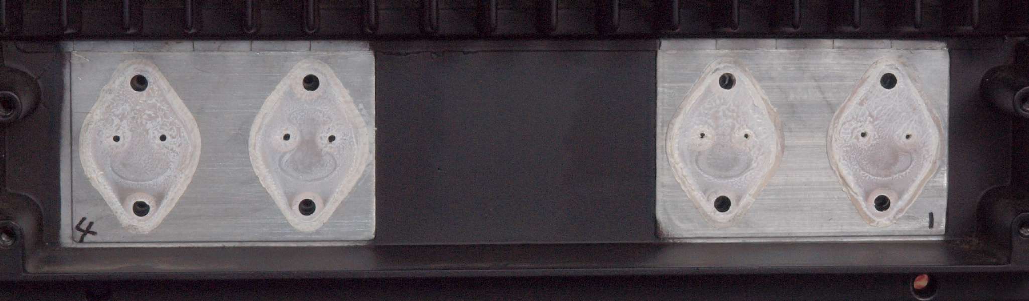 | CB4. 修理後 下蓋前左側の足部分の凹み。 |
