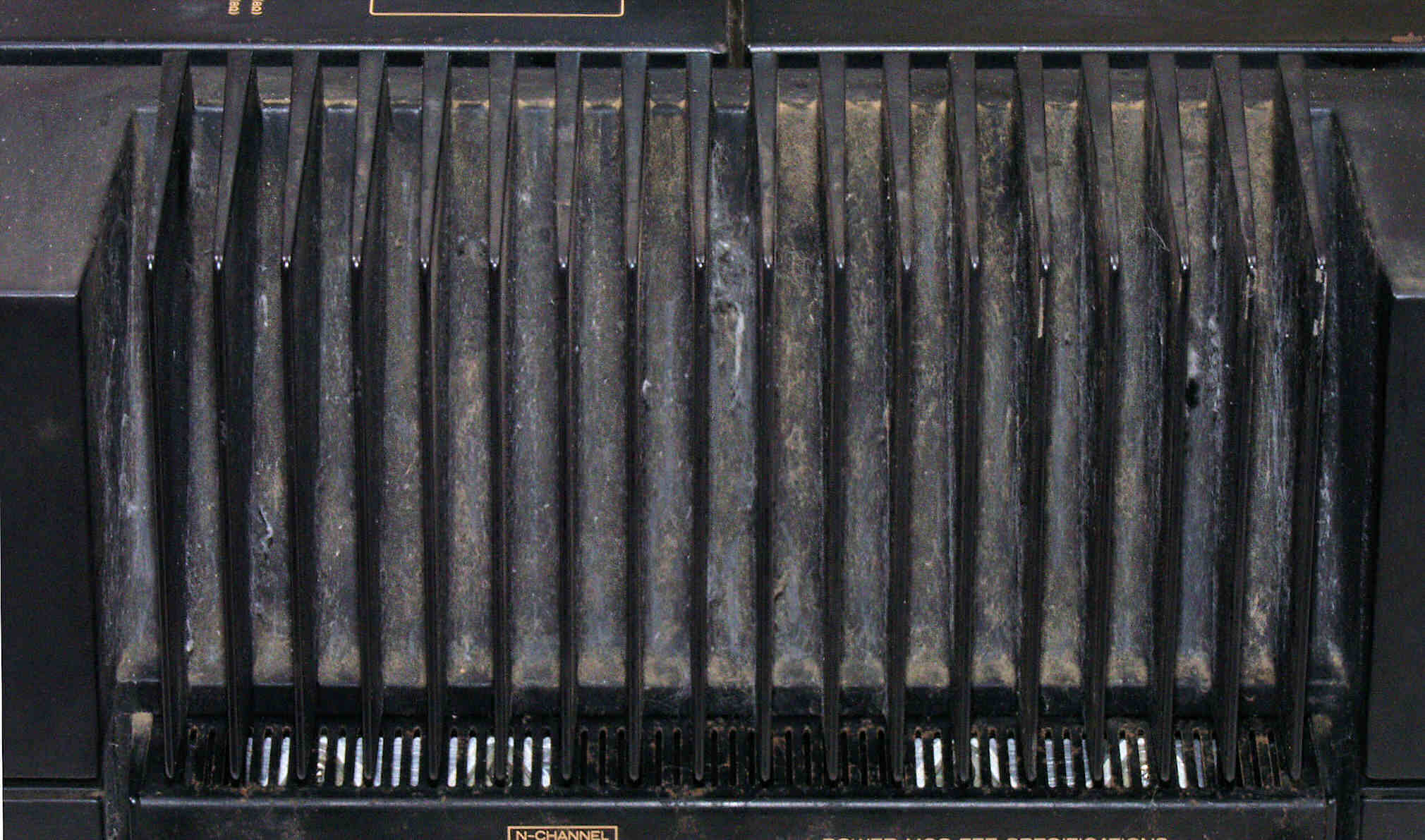 | A3C. 点検中 コンデンサーケース間や電源トランス間の埃、広告紙を隙間にいれて清掃。 |