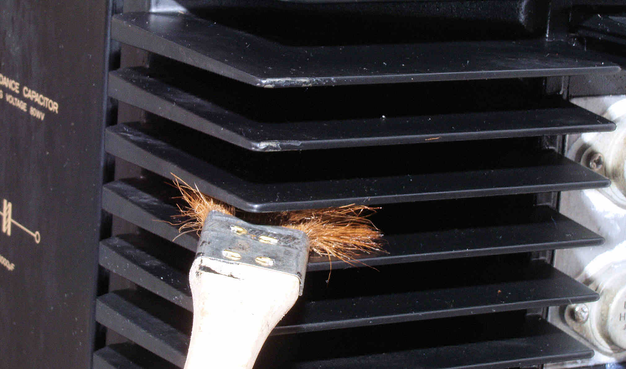 | C6B1. 修理中 R側放熱器の埃取り、刷毛で取る。 |