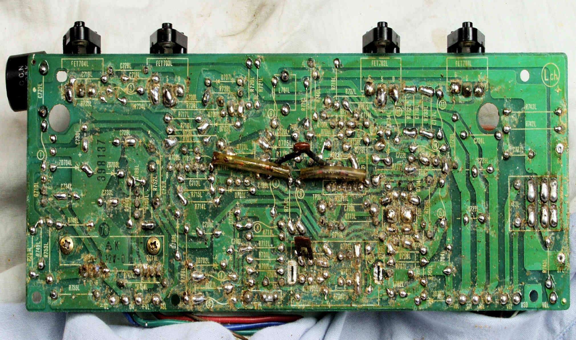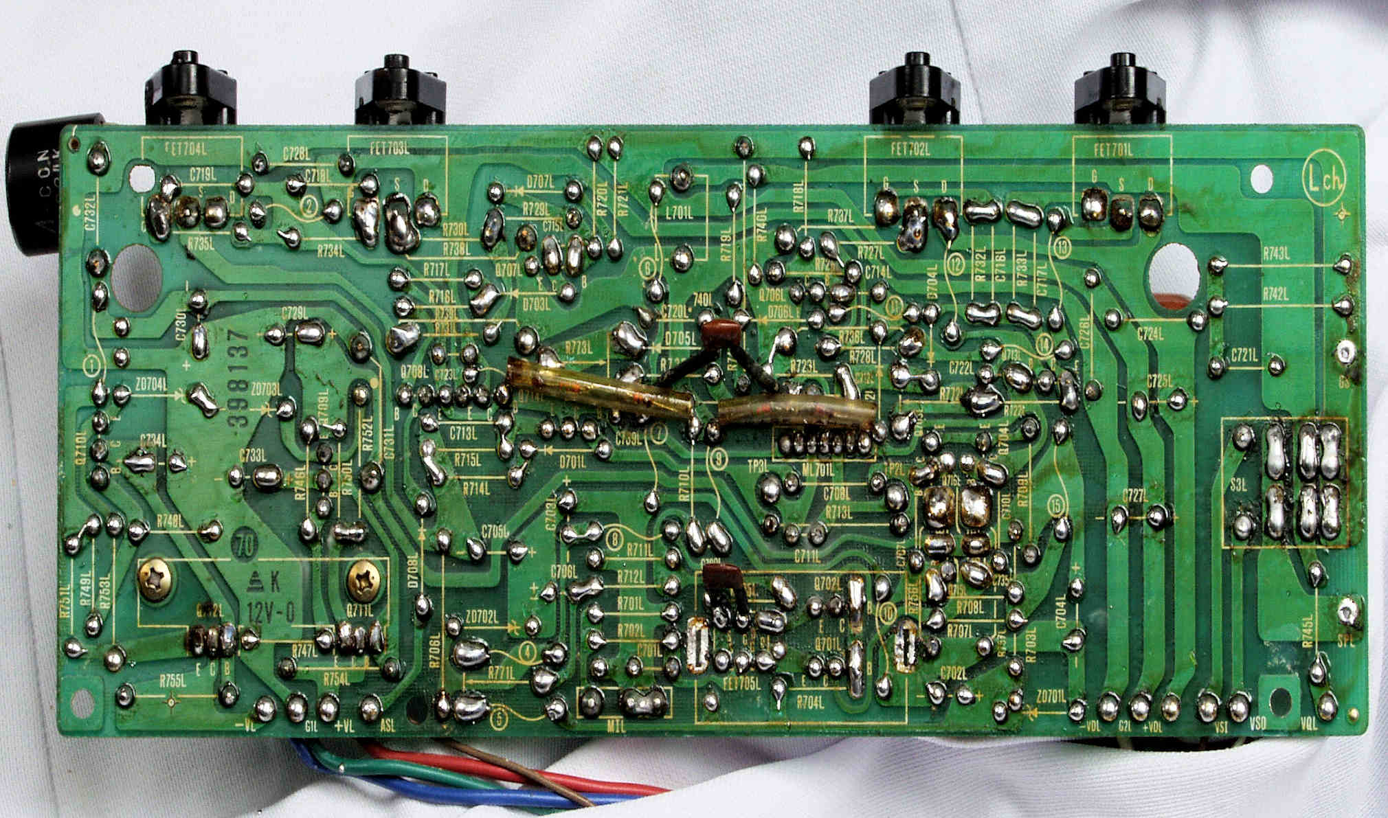 | C24. 修理(半田補正)後 L側ドライブ基板裏 半田を全部やり直す。 普通はこれで完成。 |