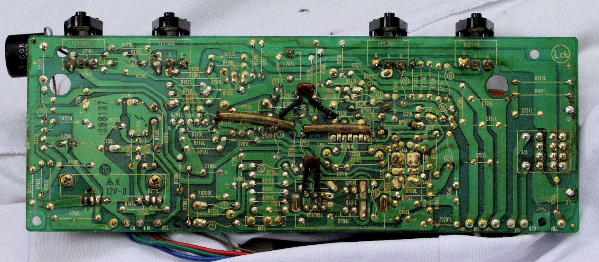 | C43. 修理後 RLモジュール裏。 TR(トランジスター)はマジックを塗って有ります。 |