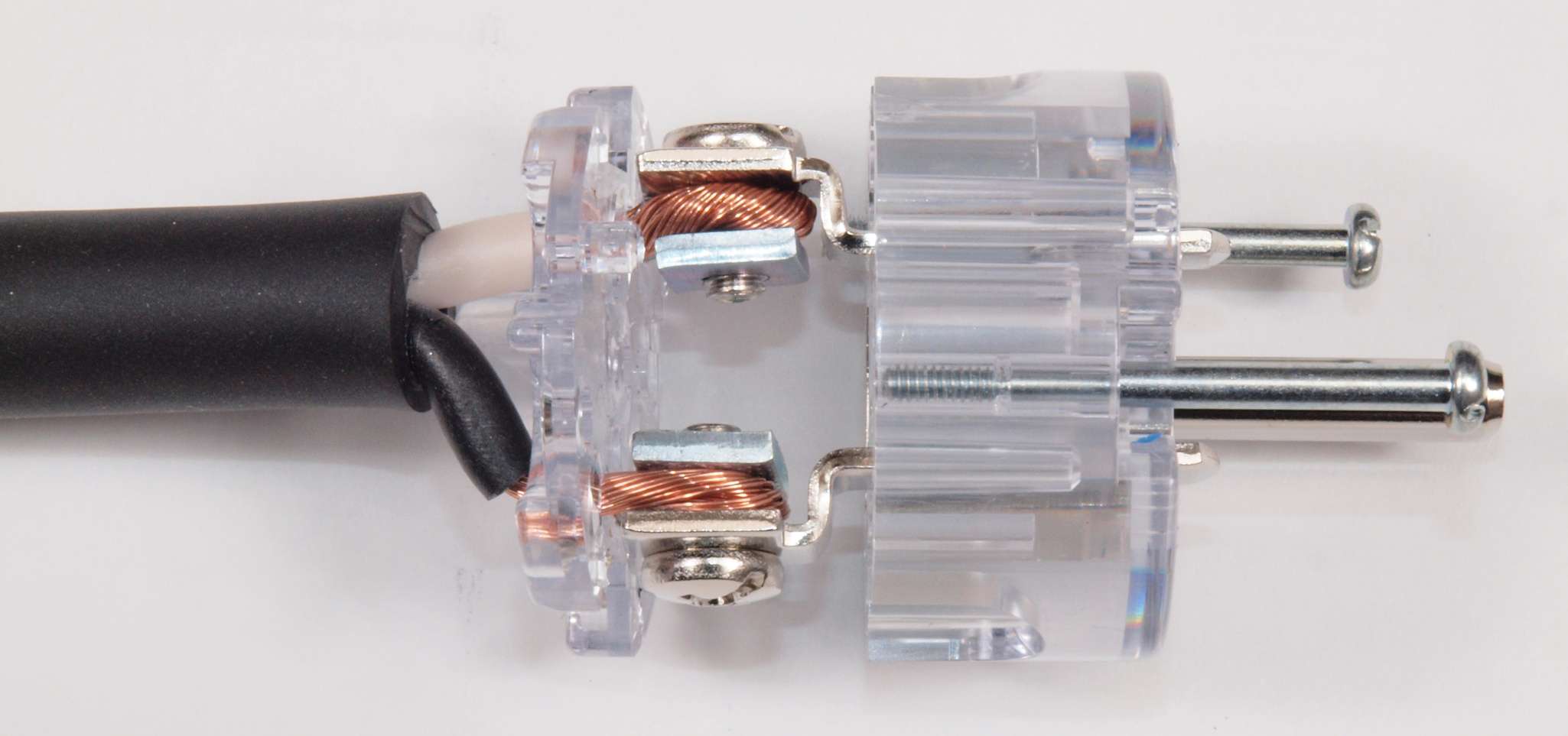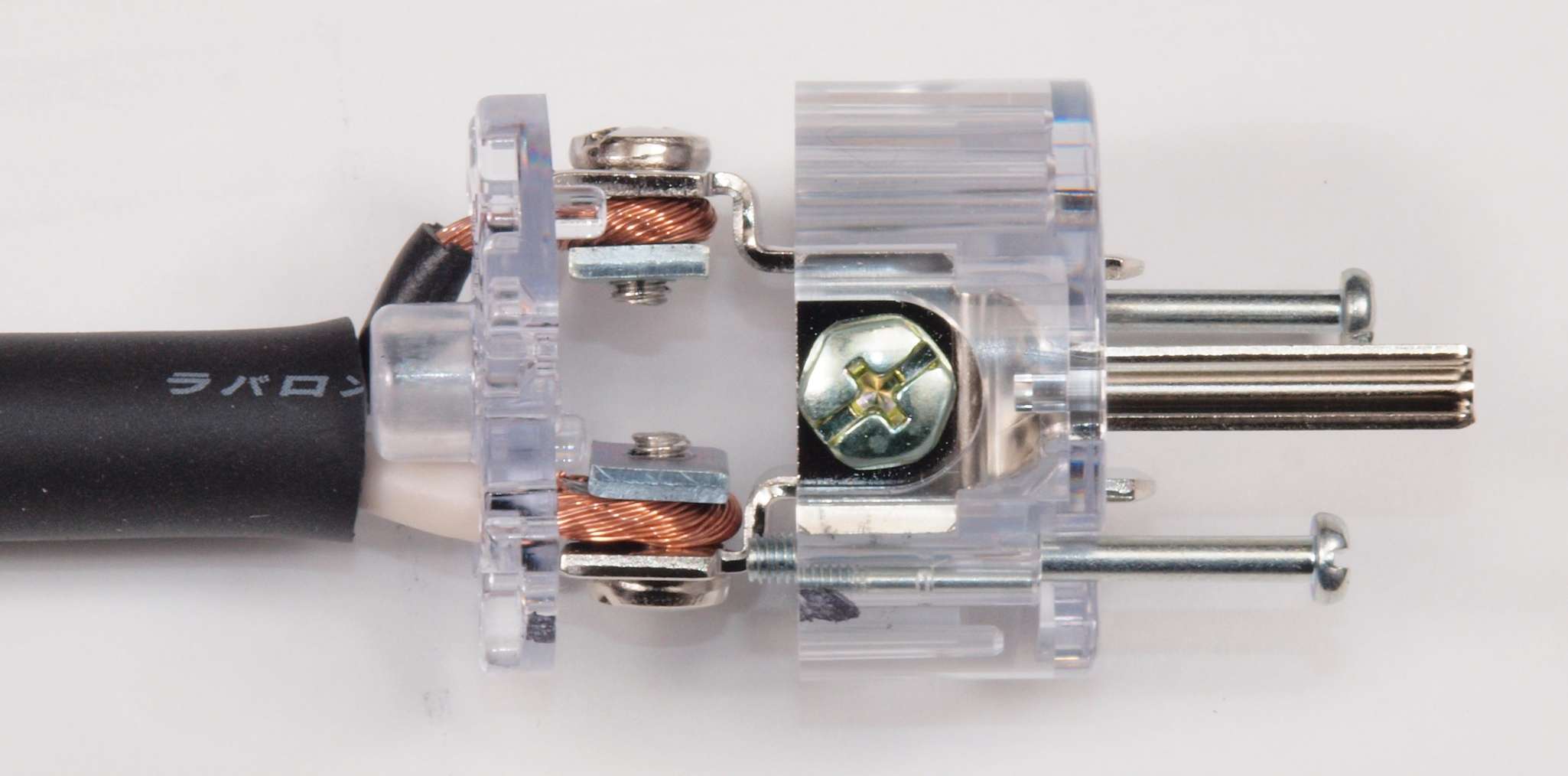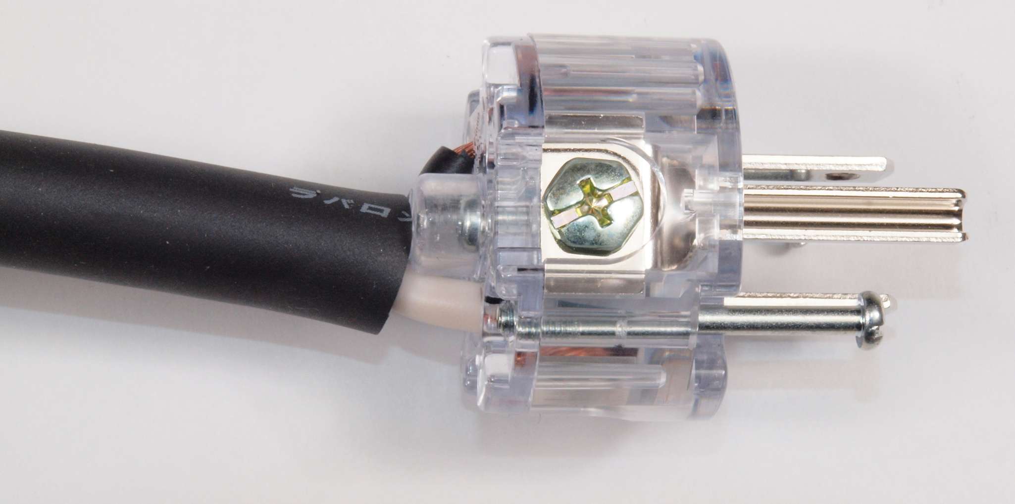 | C9D. 完成 3Pプラグにケーブル取り付。 奥までしっかり芯線が入っている。 |