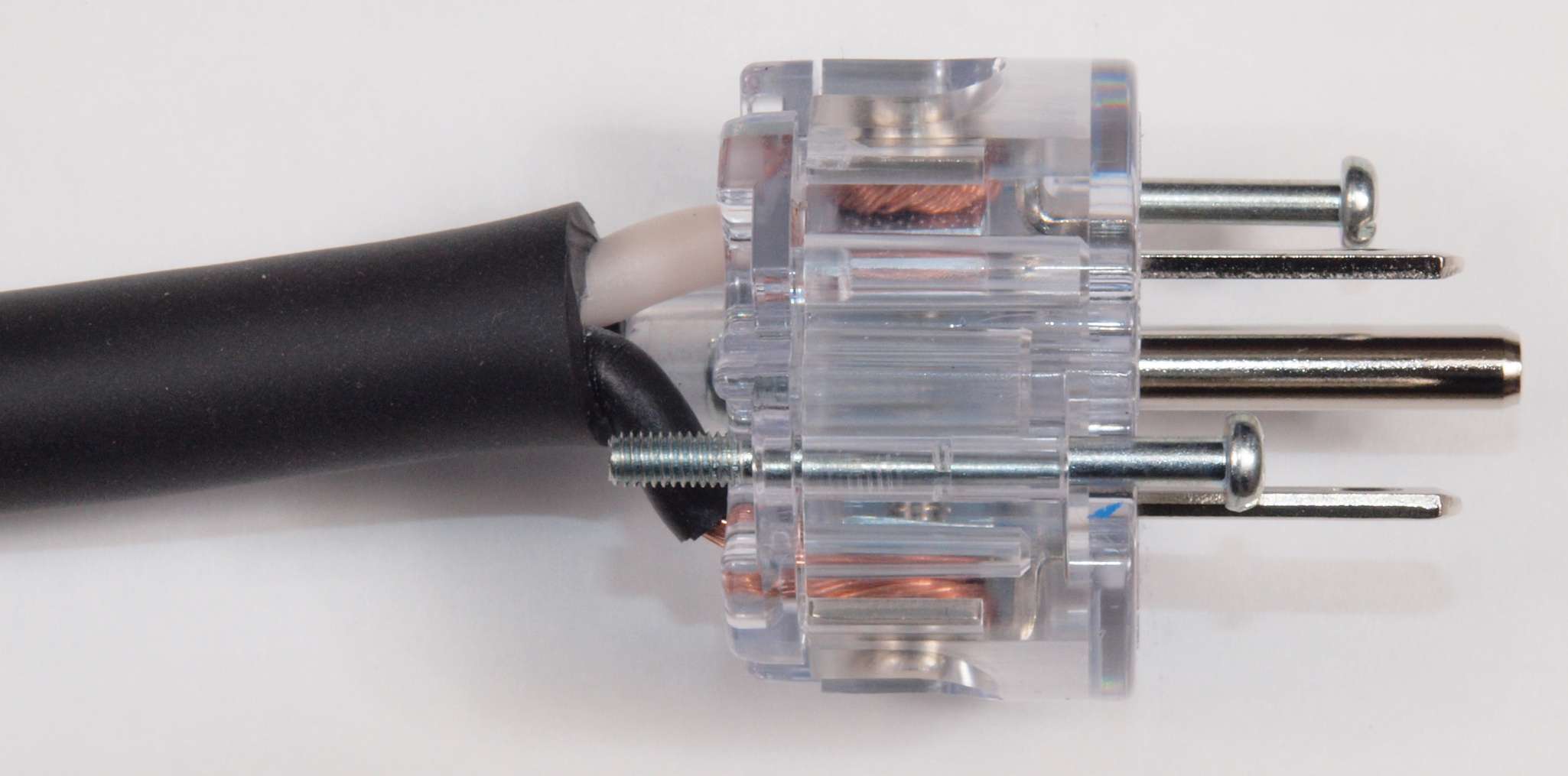 | C9E. 完成 3Pプラグにケーブル取り付、反対側。 奥までしっかり芯線が入っている。 |