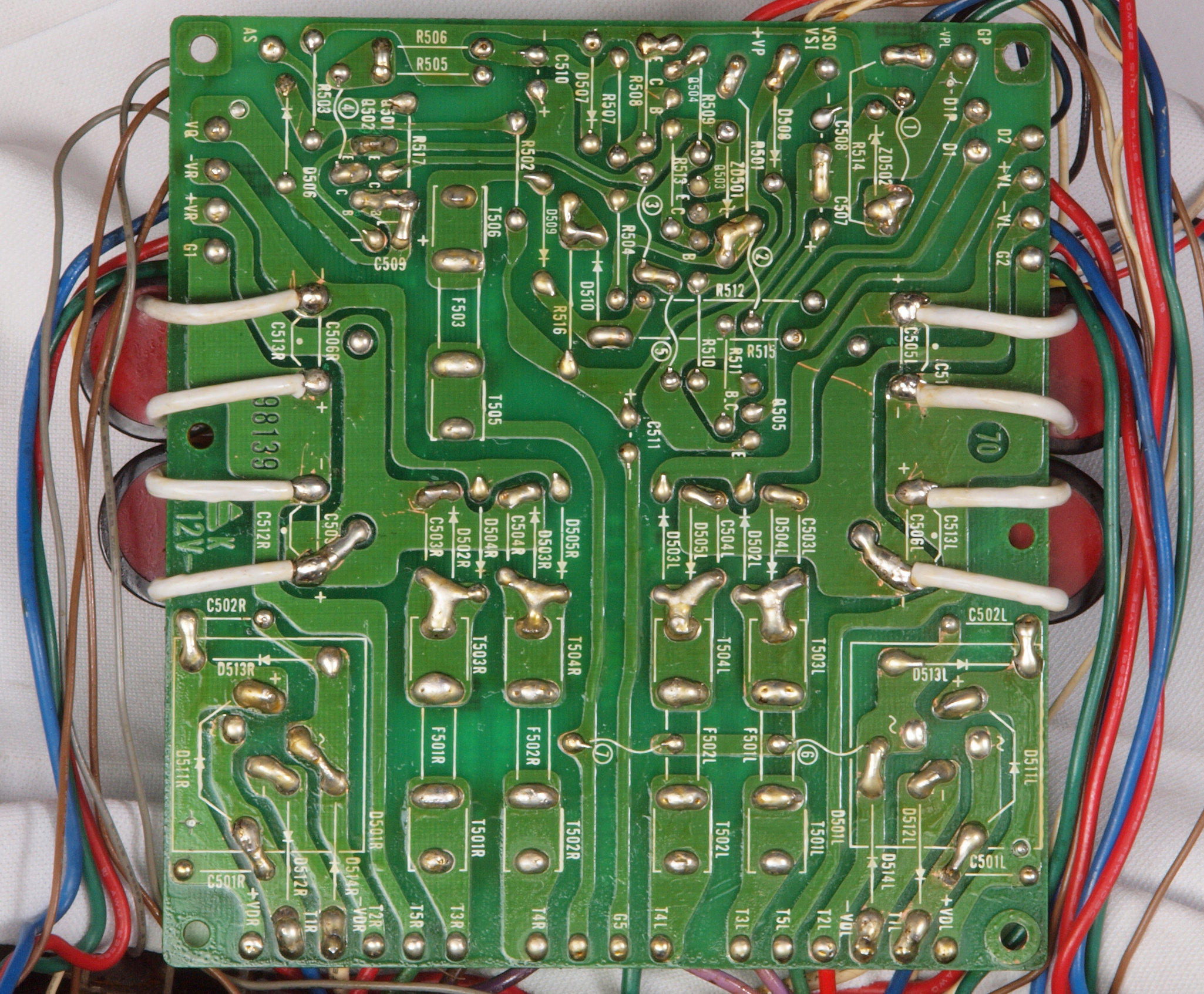 | C15. 修理(半田補正)後 R側ドライブ基板裏 半田を全部やり直す。 普通はこれで完成。 |