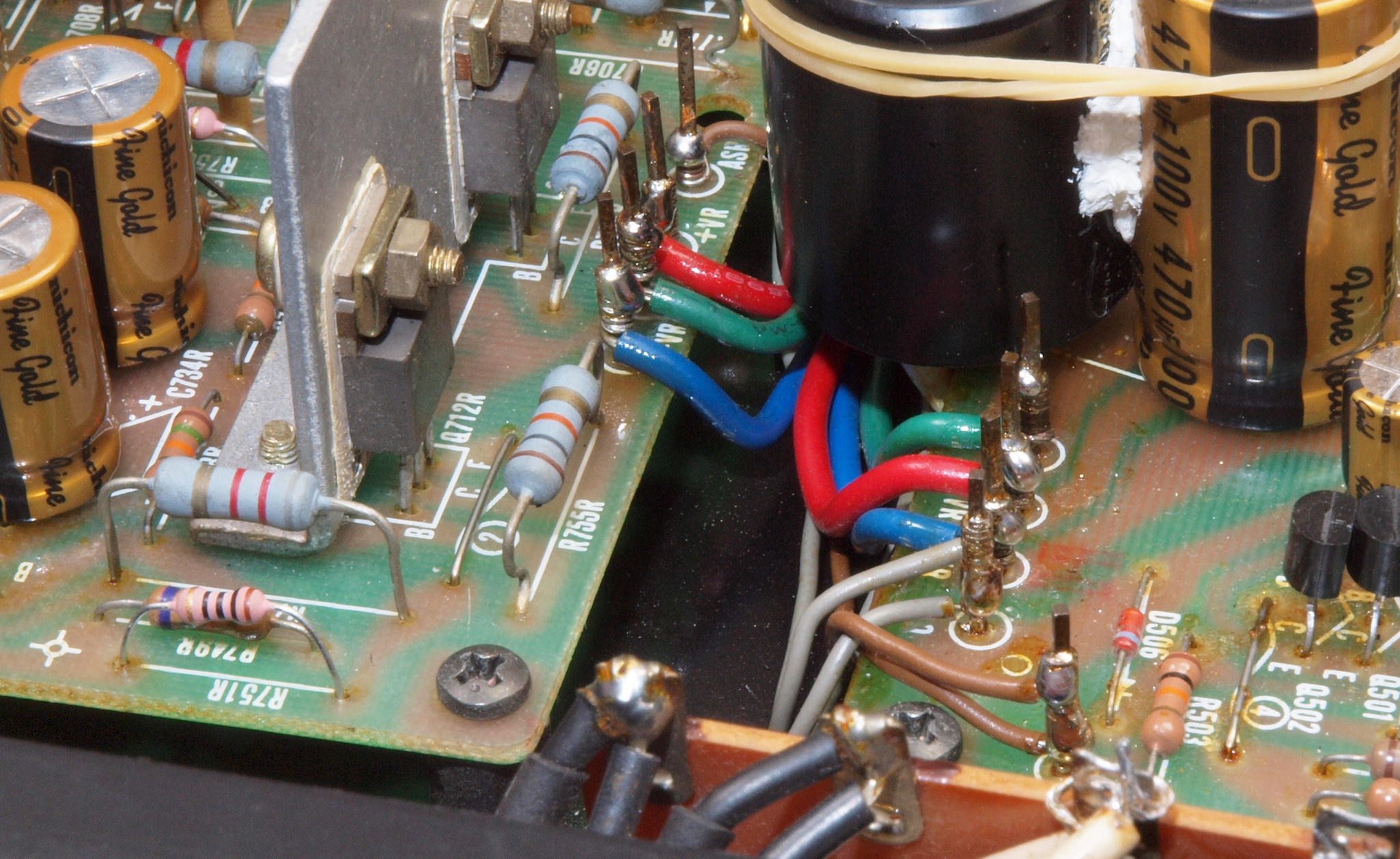 | CA6. 修理後 R側ドライブ基板−電源基板へのラッピング線に半田を浸み込ませる |