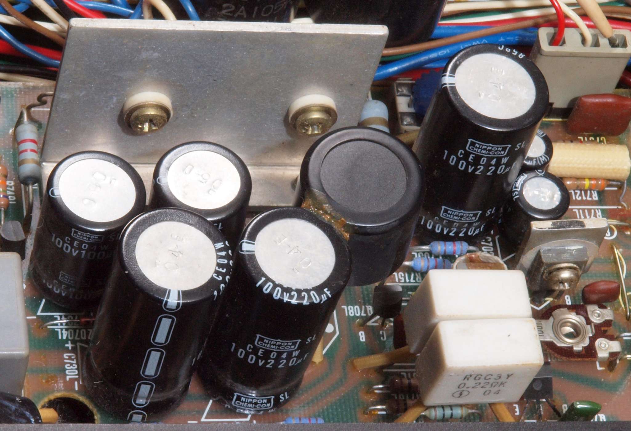 | A42. 点検中 電解コンデンサー外観比較、220μ/100V |