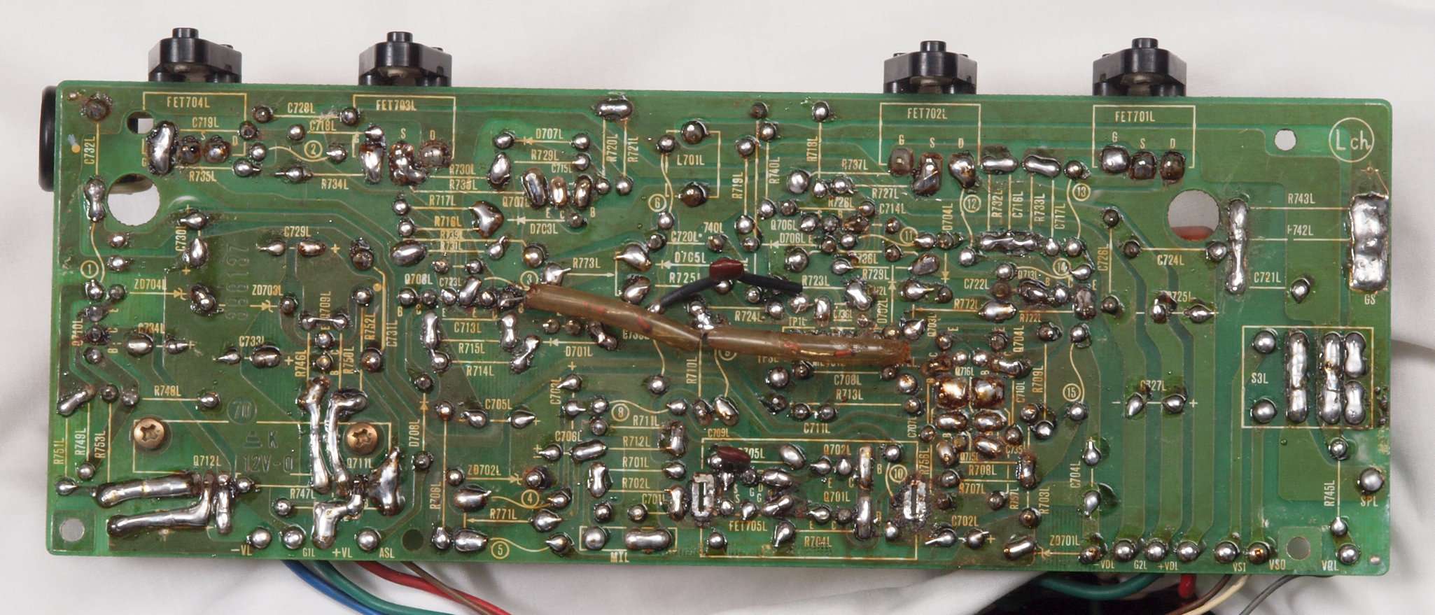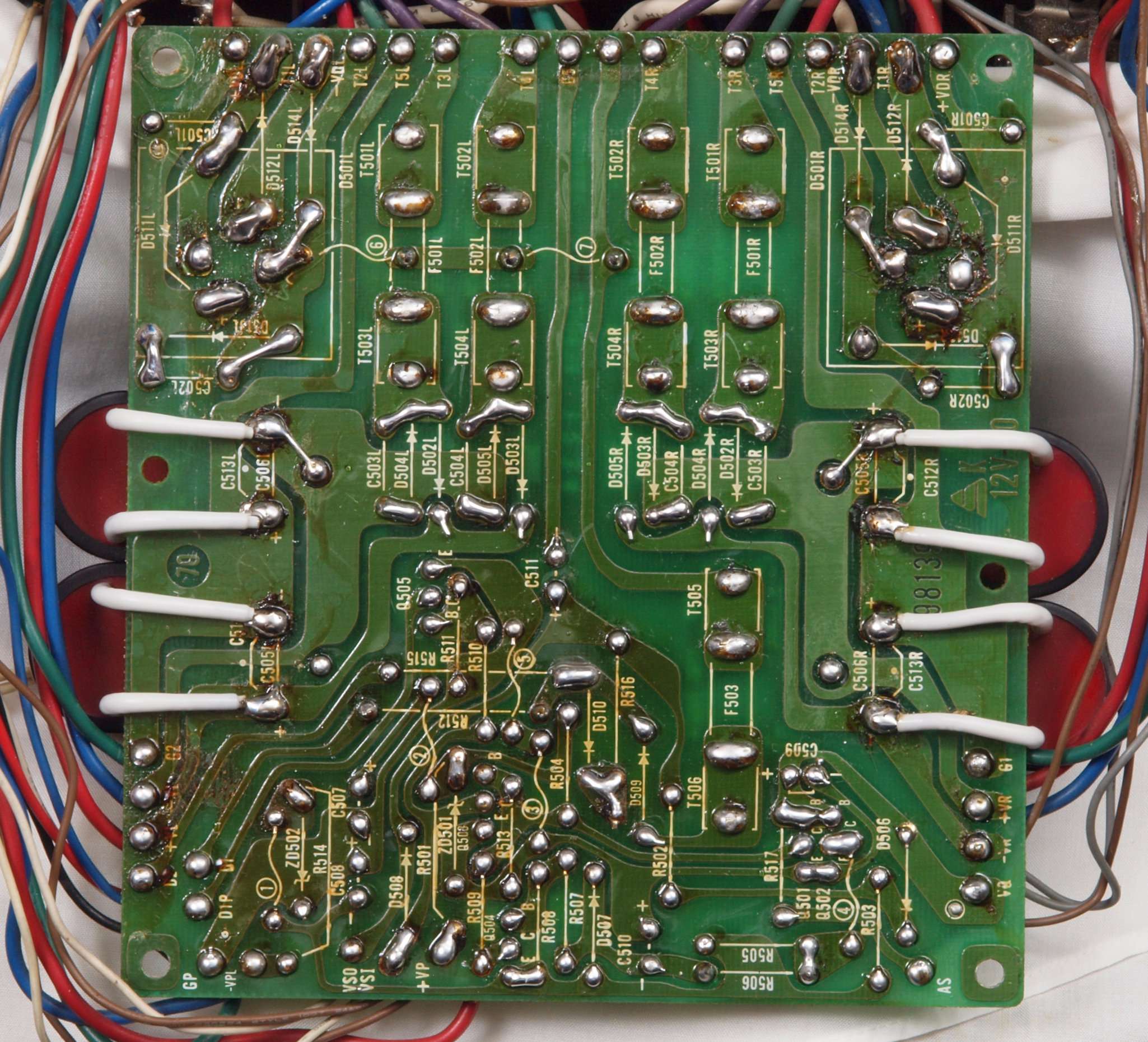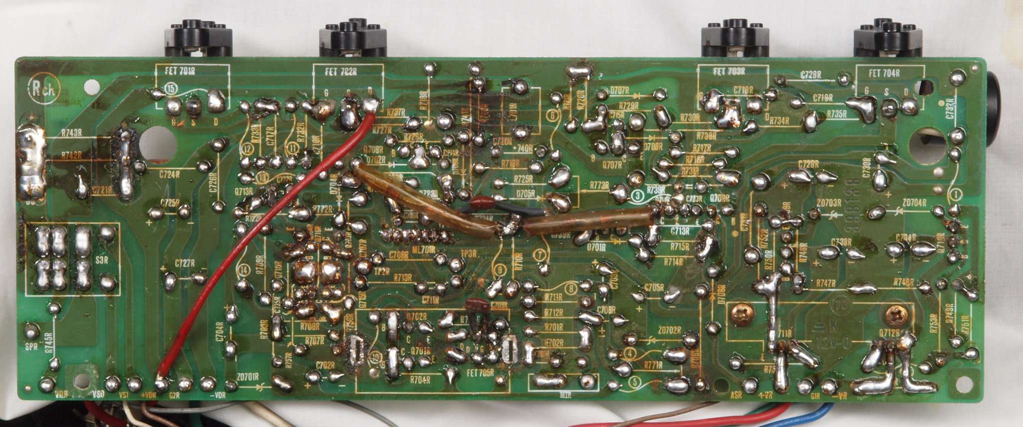 | C16. 修理(半田補正)後 R側ドライブ基板裏 半田を全部やり直す。 普通はこれで完成。 |