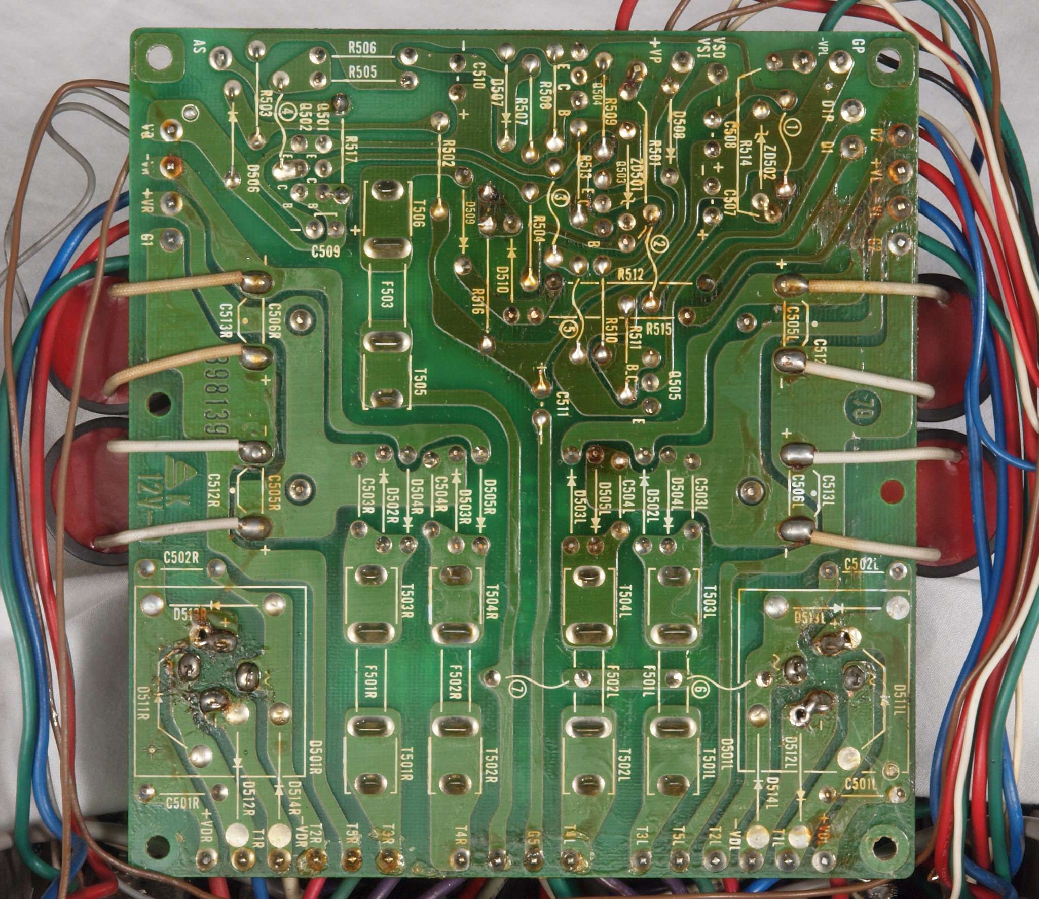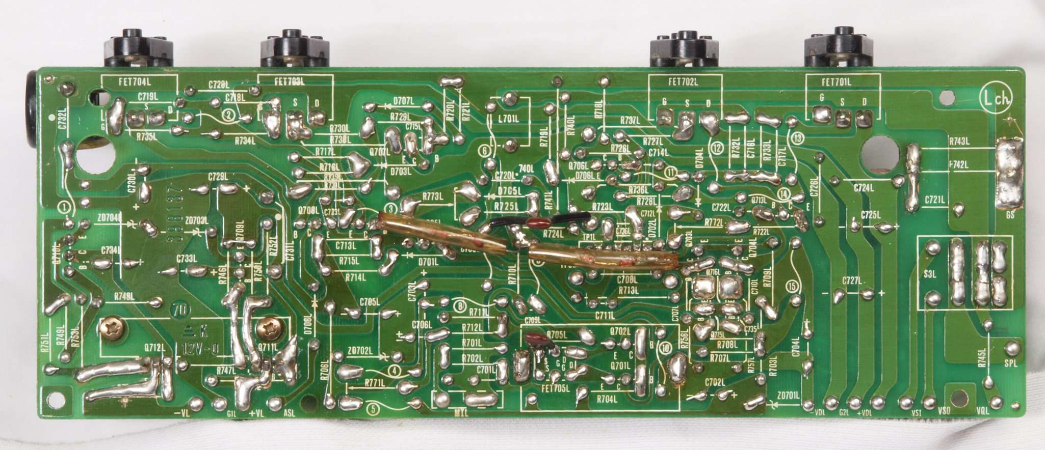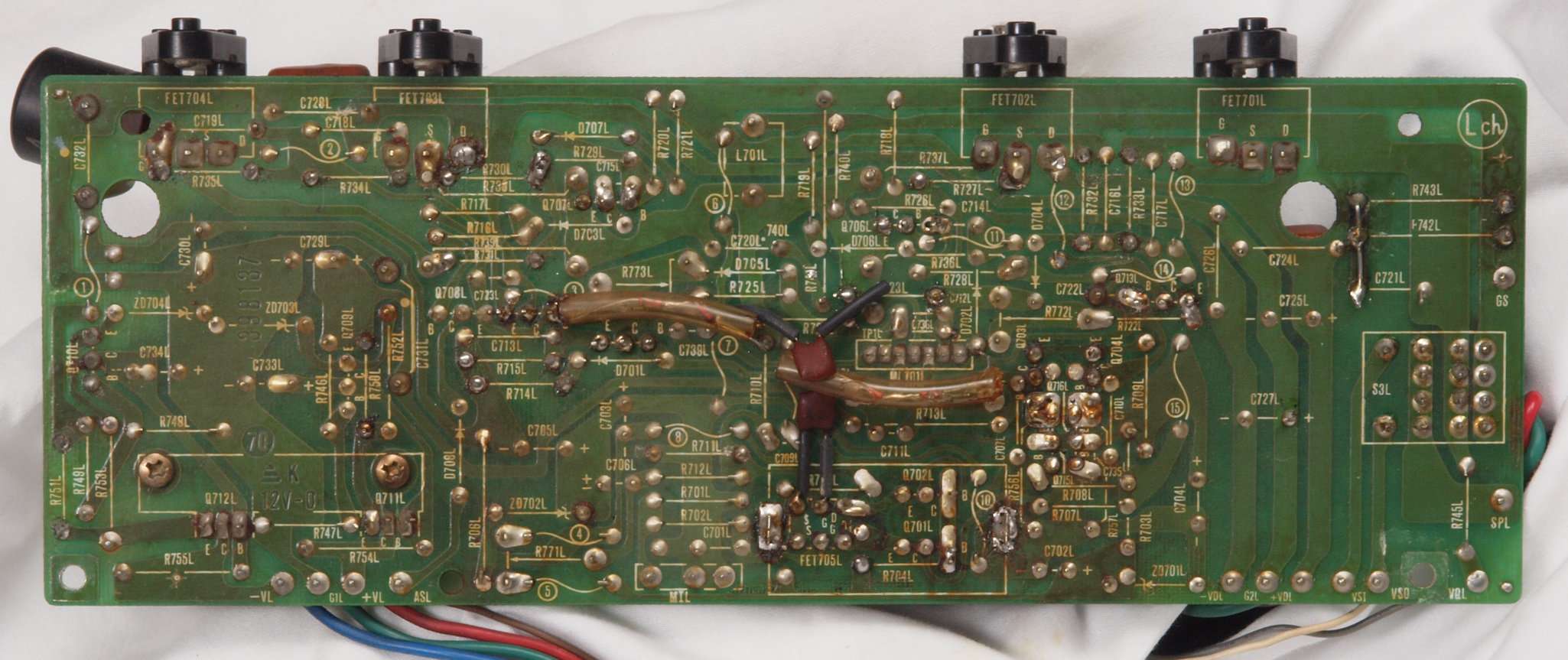 | C16. 修理(半田補正)後 R側ドライブ基板裏 半田を全部やり直す。 普通はこれで完成。 |