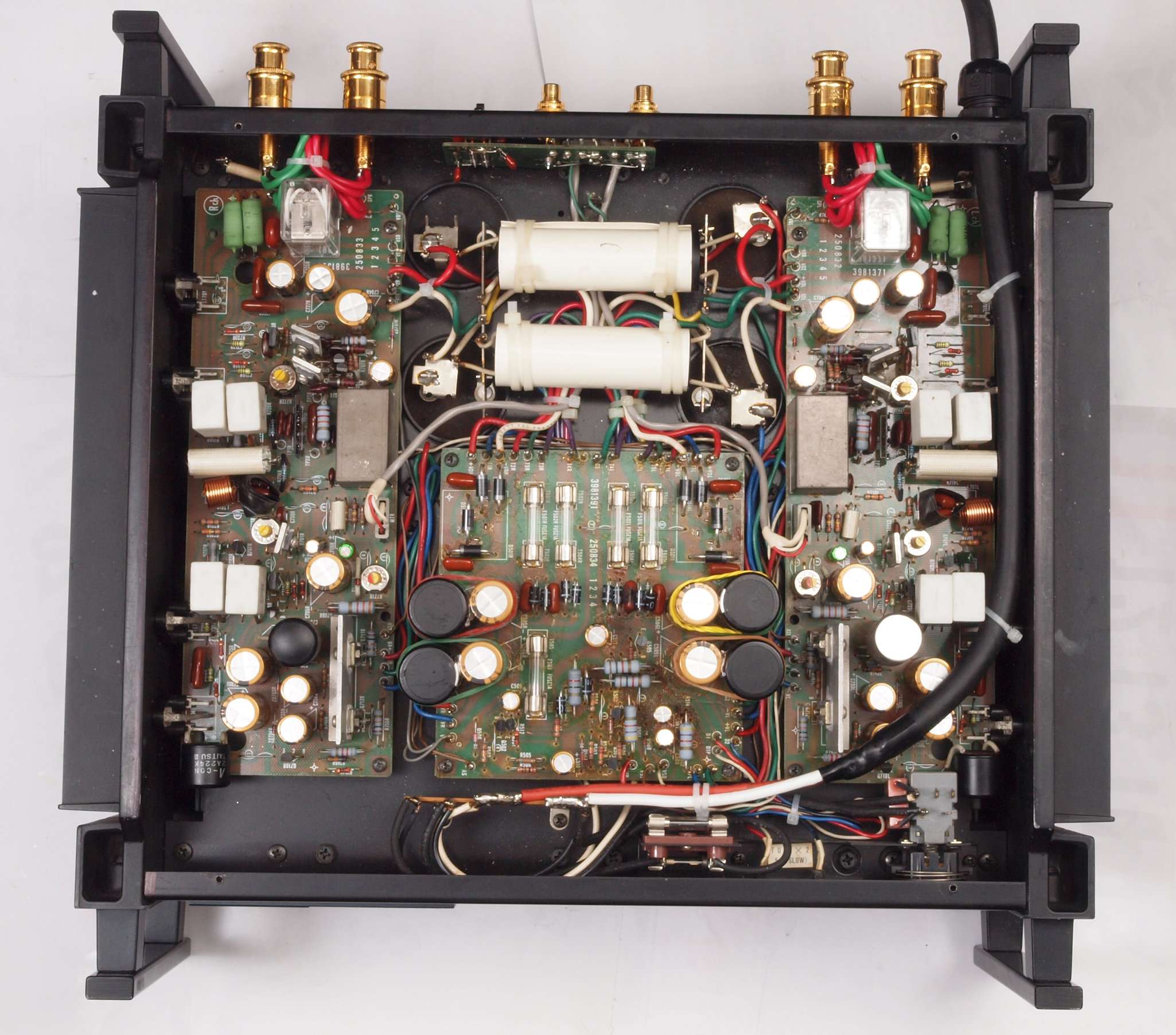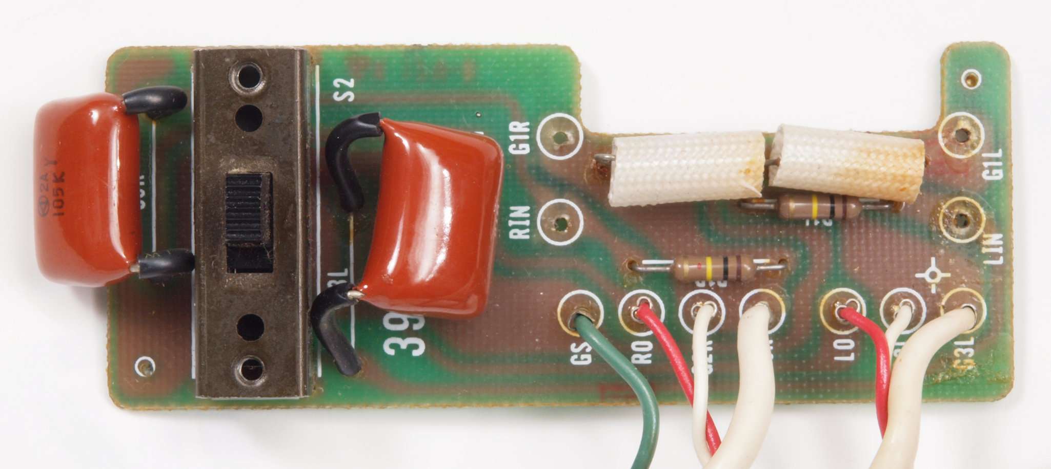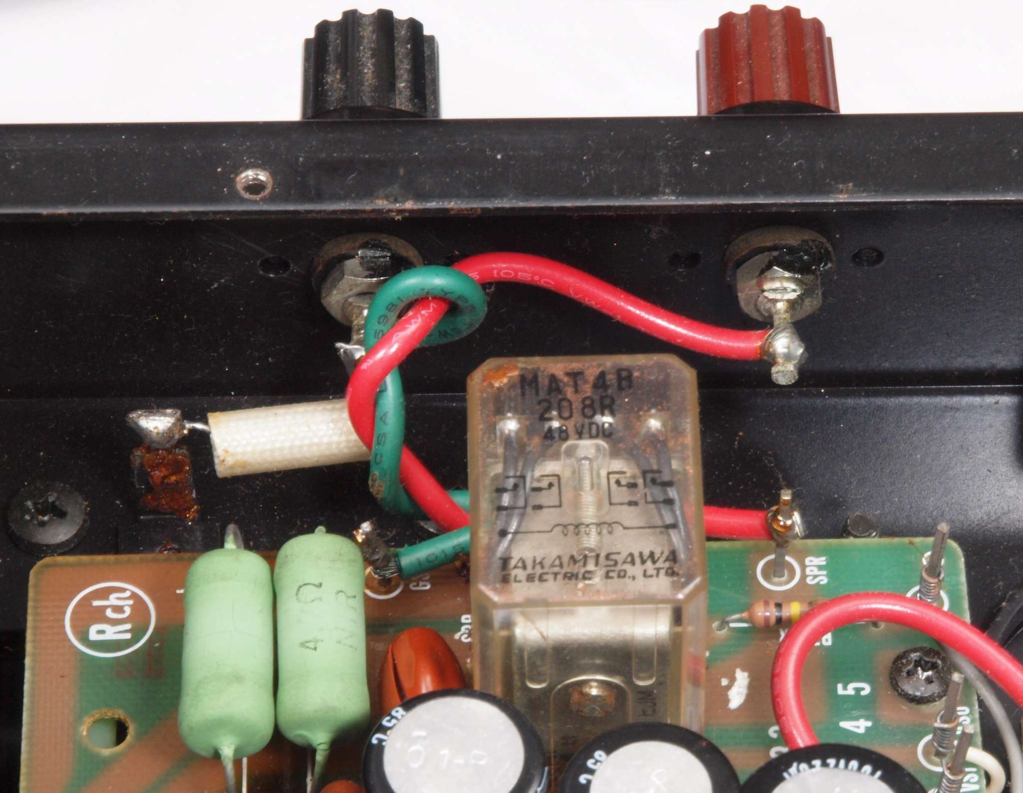 | C66. 修理後 入力RCA端子基板。 フイルムコンデンサー2個交換。 |