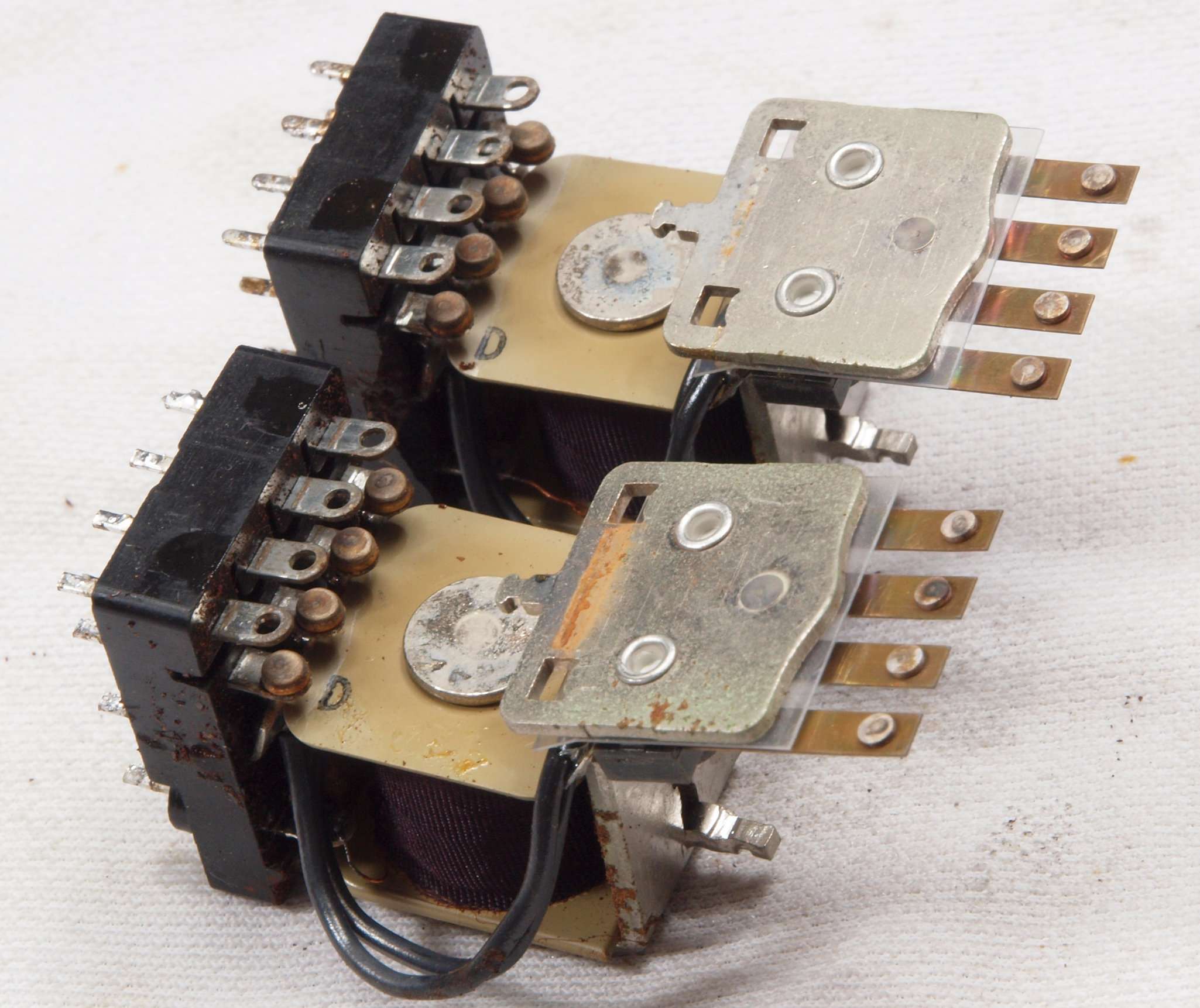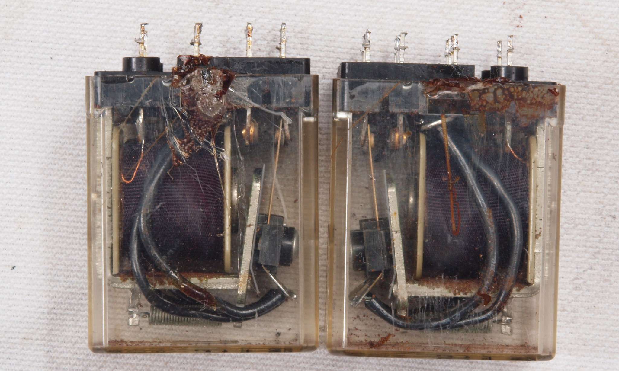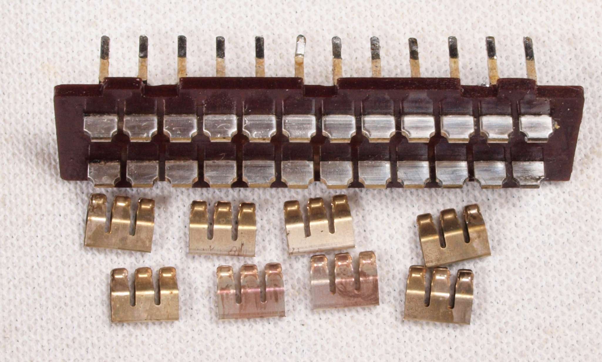 | CE4. 交換した部品、SP接続リレーの接点、4パラなので綺麗なのも有り。 |