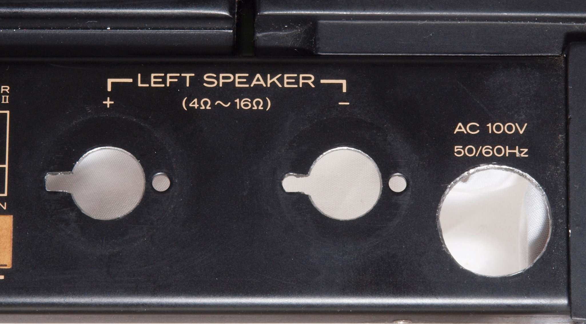 | A84. 点検中 R−SP端子。 WBT−0735に交換可能です、但し既存の取り付け穴が見えます。 |