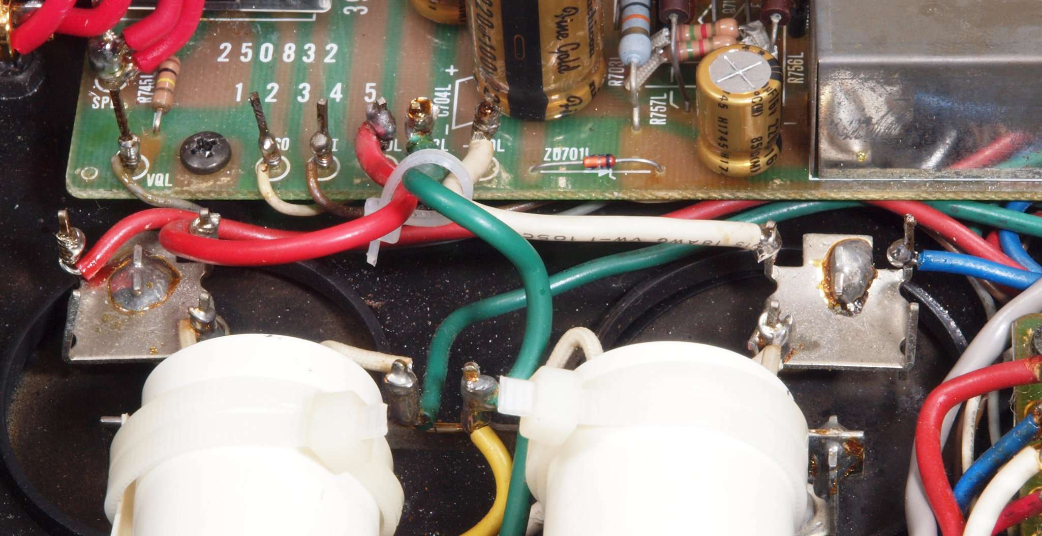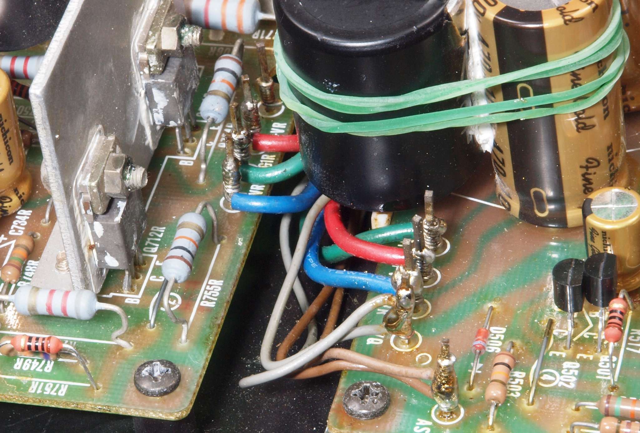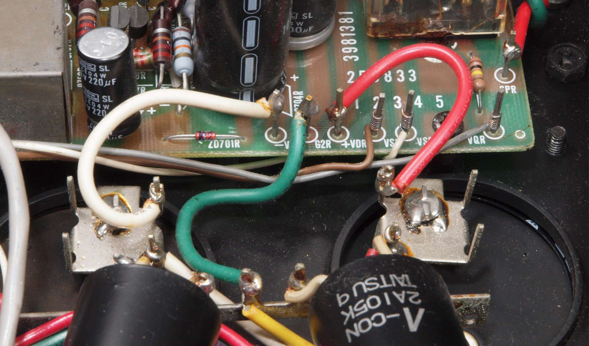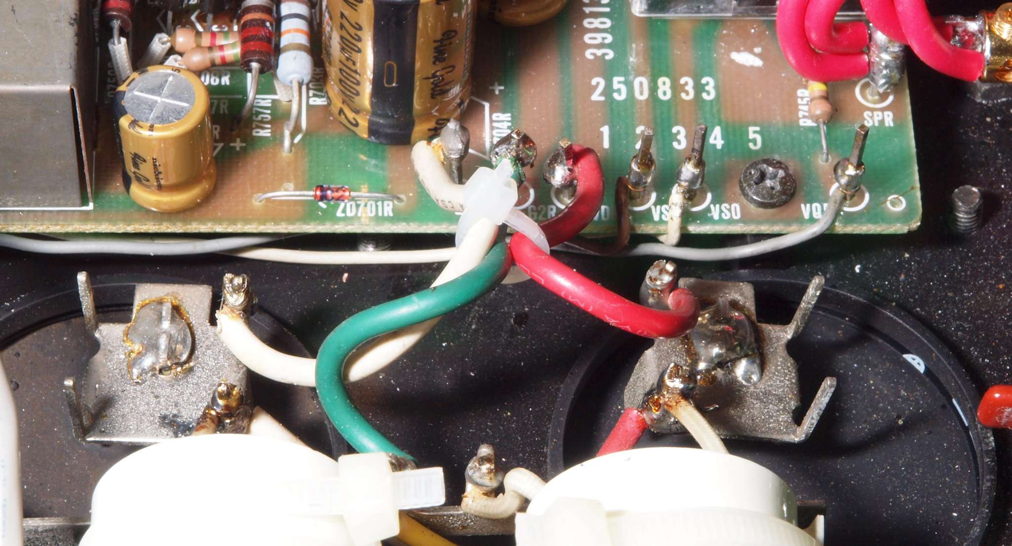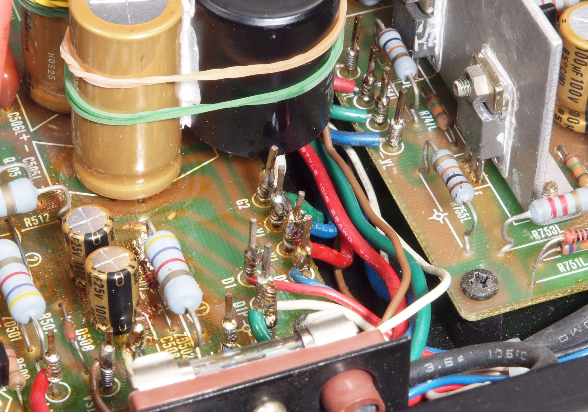 | CA5. 修理前 R側ドライブ基板−電源基板へのラッピング線 |