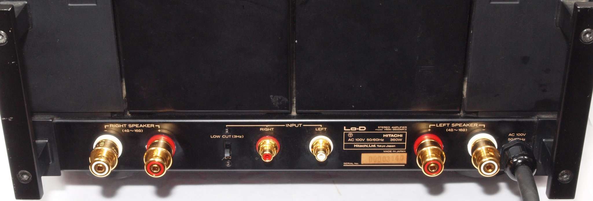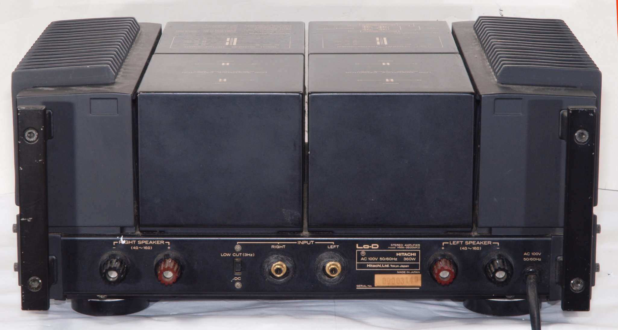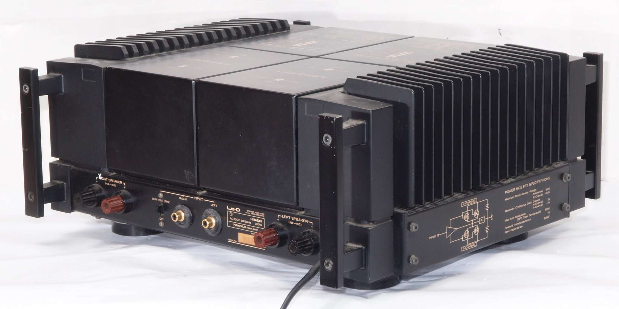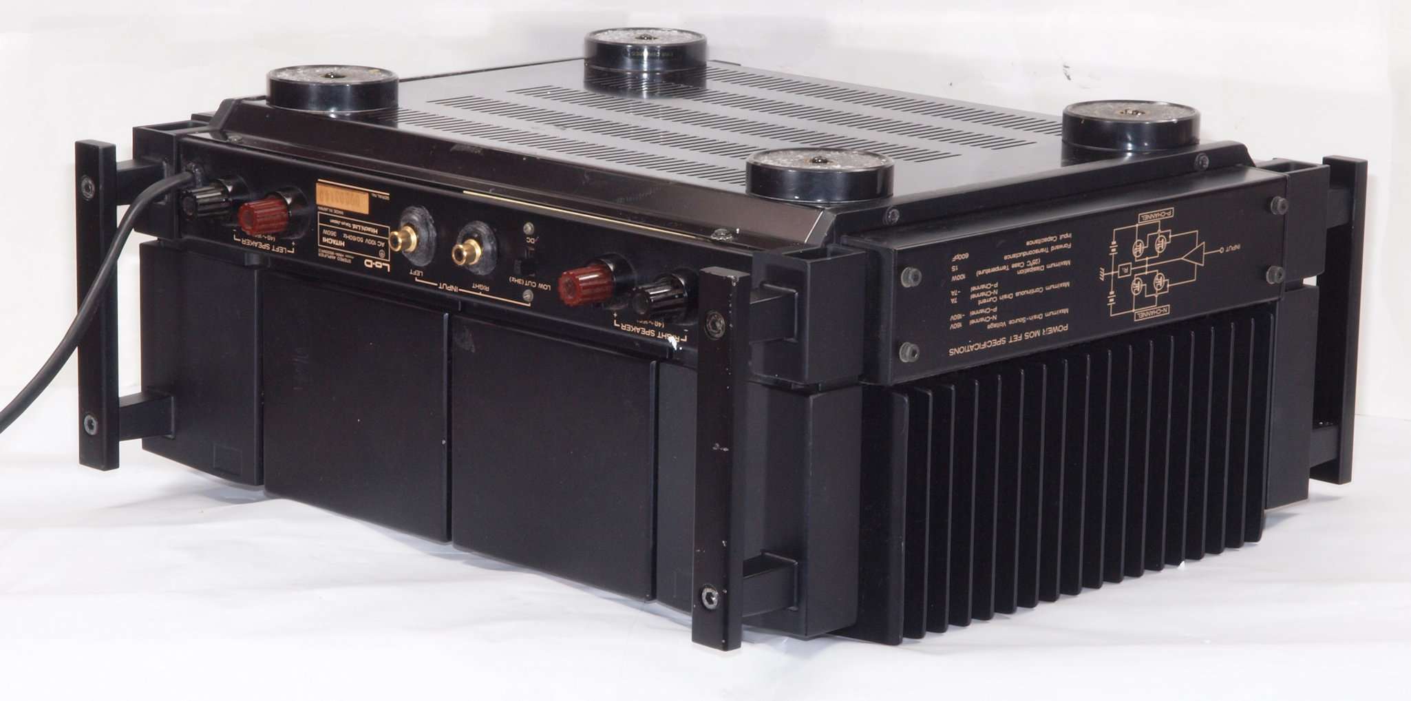 F. 修理費 153,000円 オーバーホール修理。 但し、最終測定時に結果が悪くて、終段FET(電界効果トランジスター)交換費用は別途。 Y. 購入ユーザー宅の設置状況 S. HITACHI Lo−D HMA−9500mkU の仕様(マニアルより) |