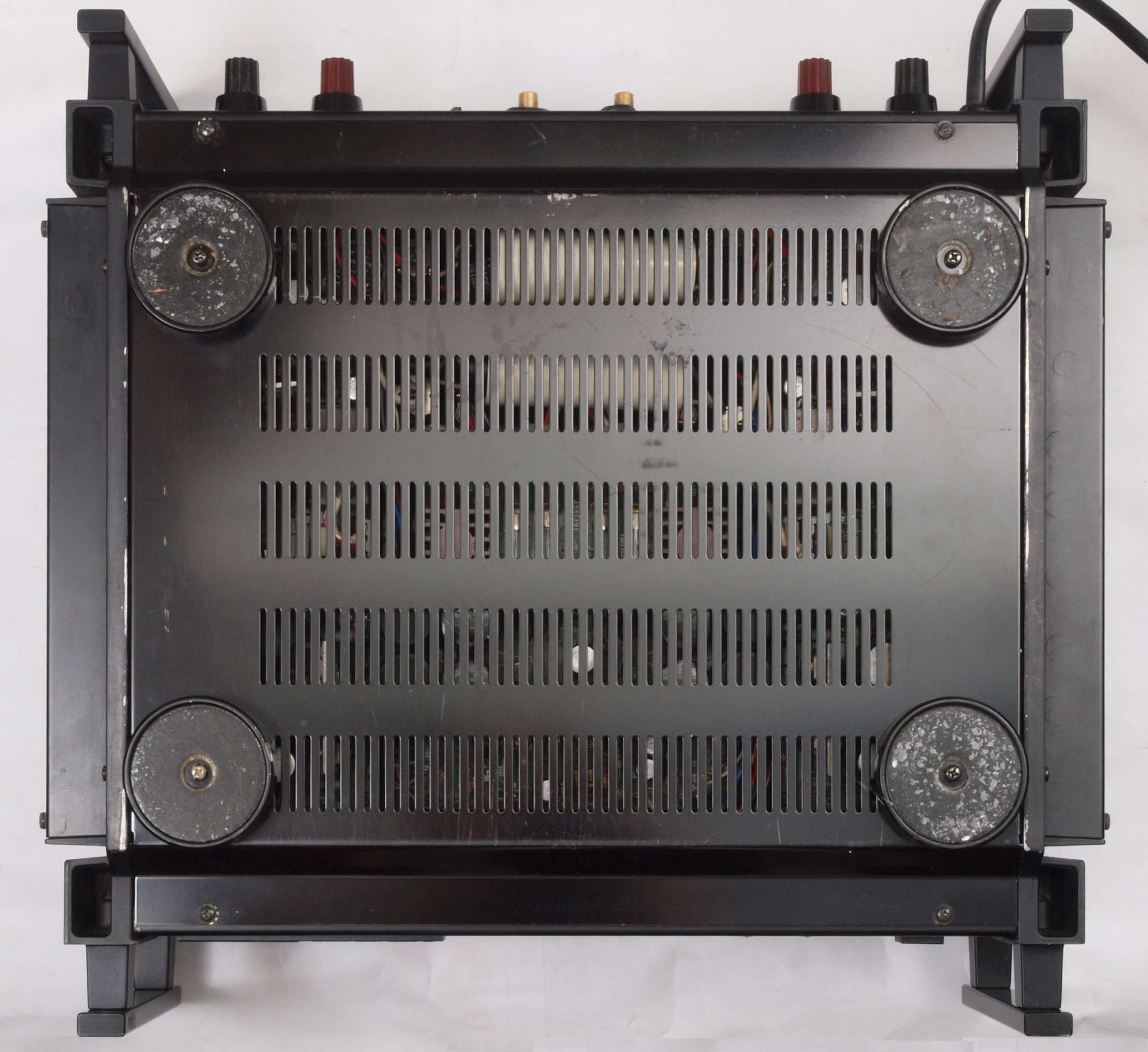 | 注意 このAMPはアースラインが浮いています。 AMPのシャーシにSPの線(アース側)やプリAMPのアースもも接続してはいけません。 RL−SPのアース線も接続(共通)してもいけません、+−の撚りのあるのも使用出来ません。 又、DC(directconnection)入力が可能ですが、絶対に使用しないこと=ここ参照 |