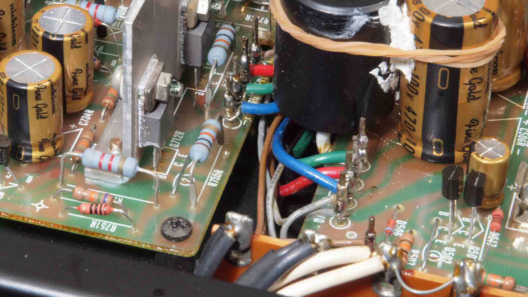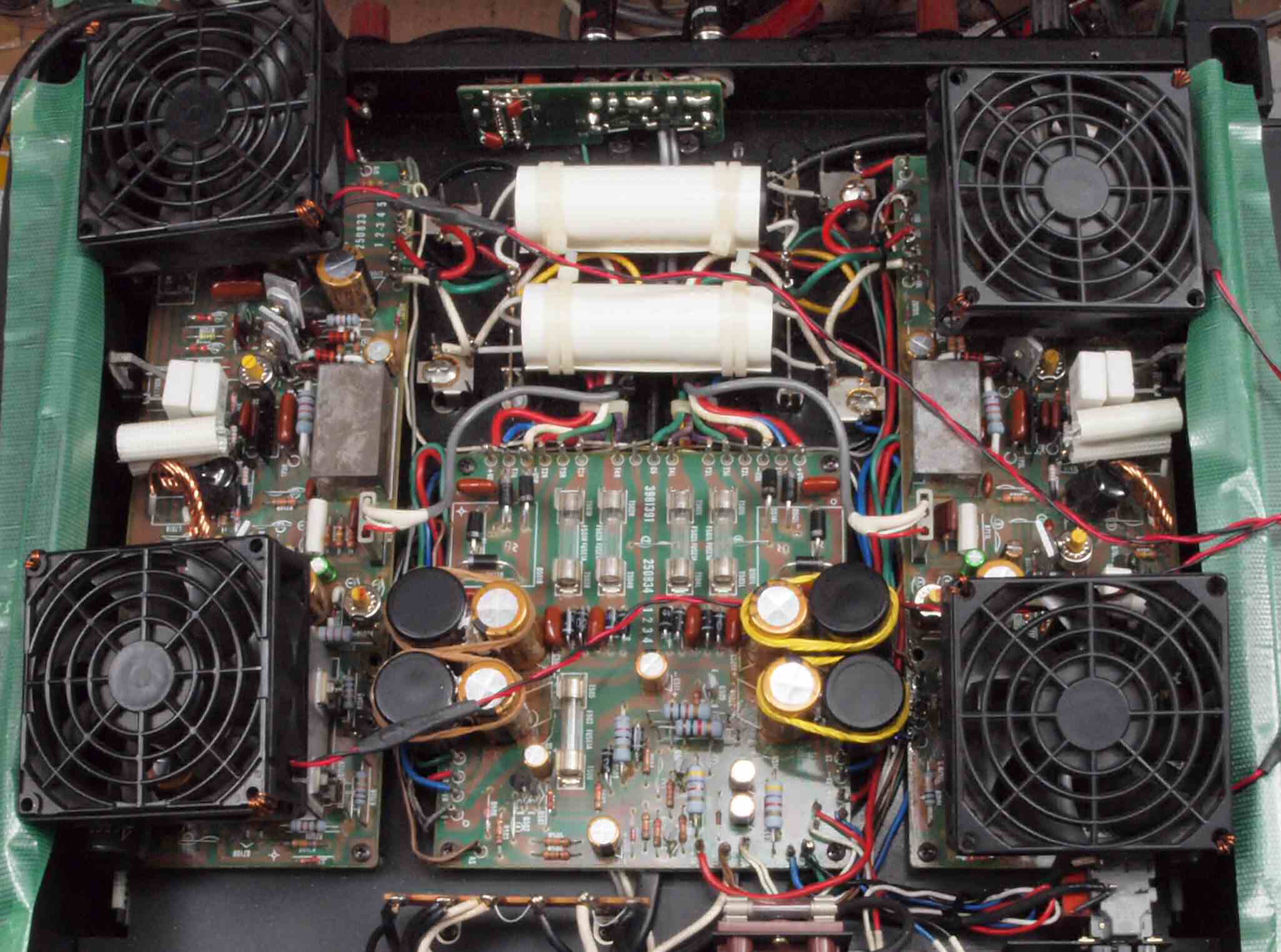 ヒューズ入り抵抗全部、電解コンデンサー11個、TR(トランジスター)2個交換、モジュール修理交換部品は除く。