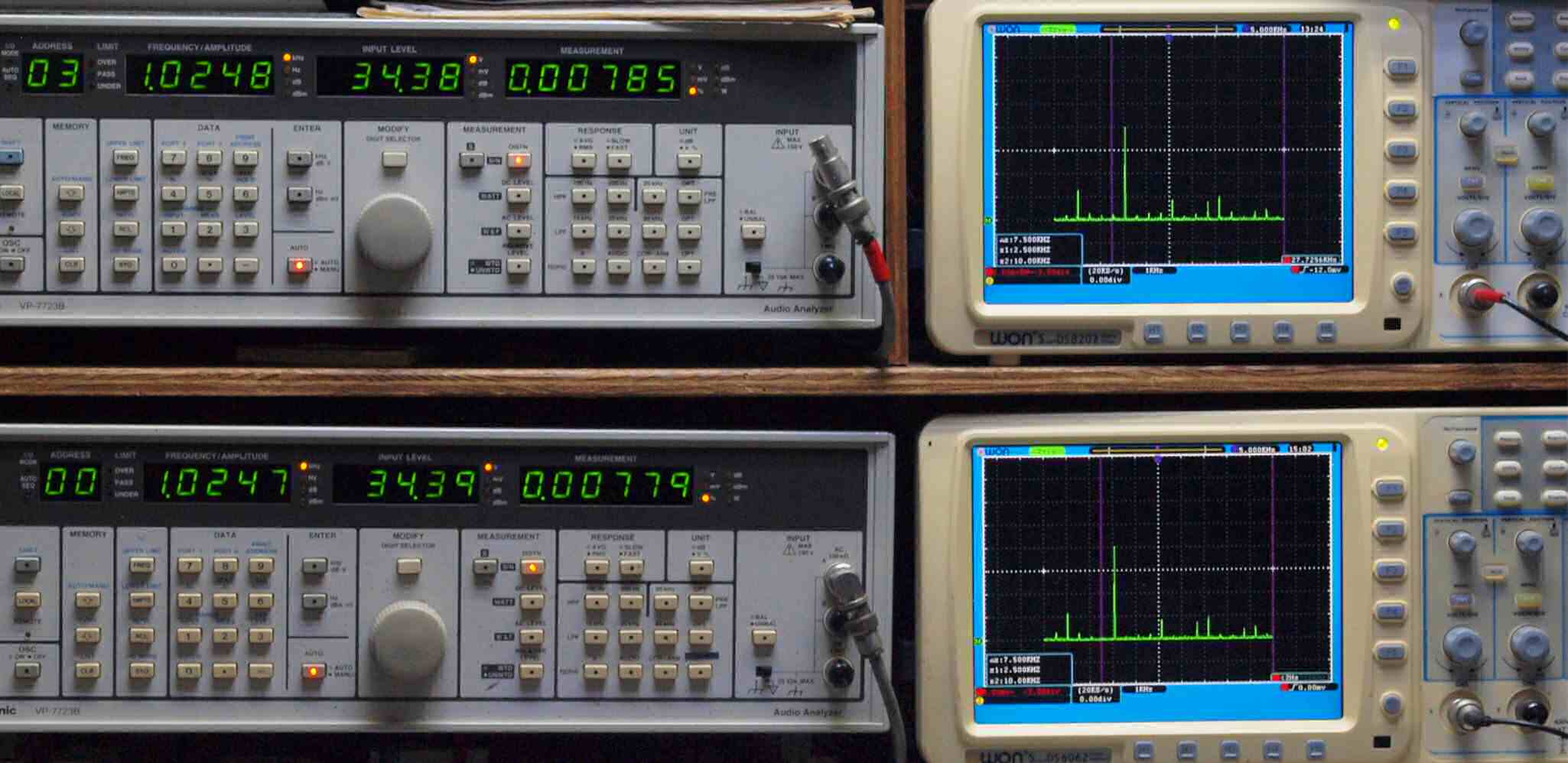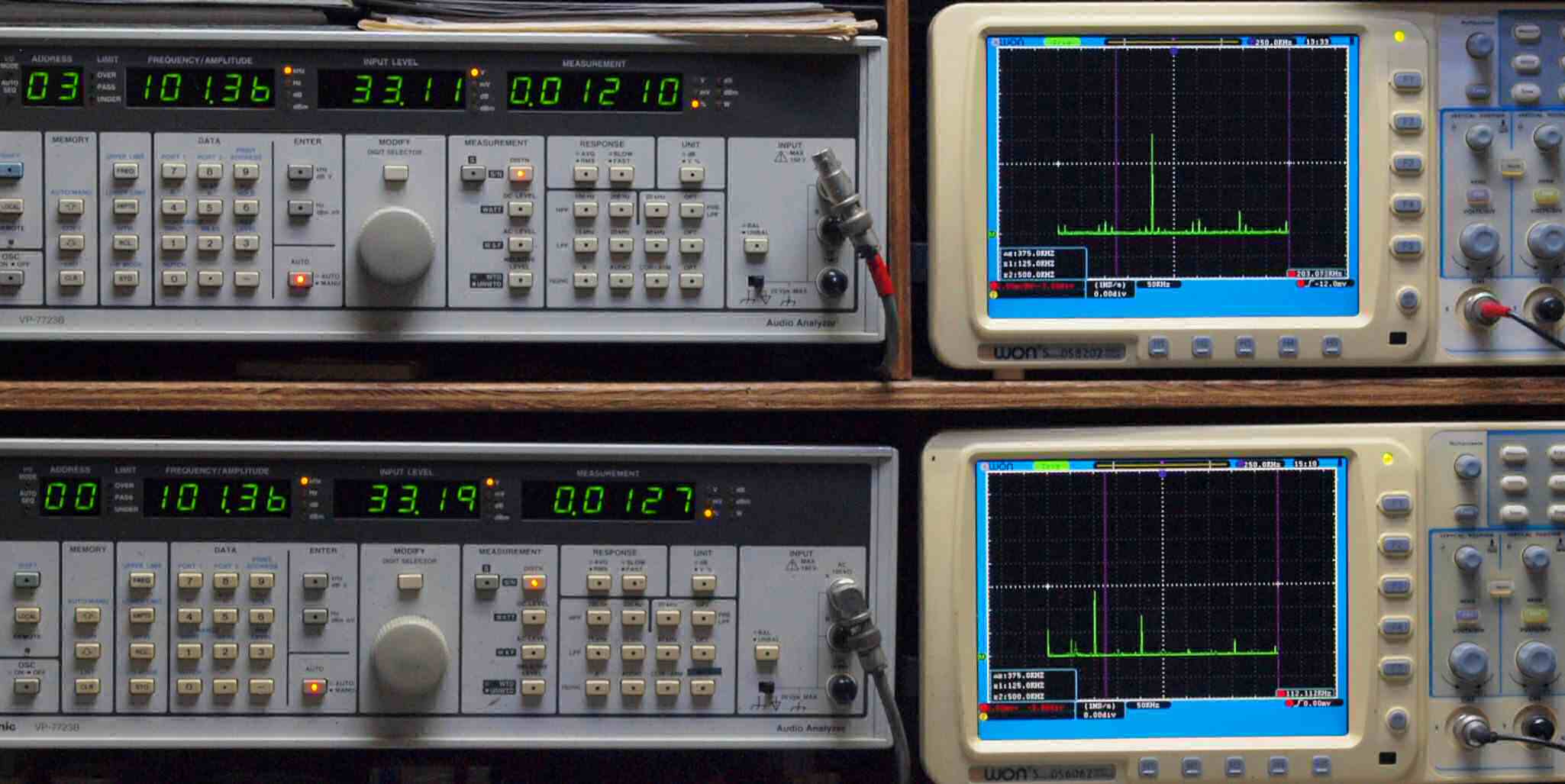 よって、ダイアル設定出力レベルより低なります。測定機器の仕様や整備の様子はこちら、「VP−7723B」「VP−7201A」。 FFT画面の見方はこちら。
