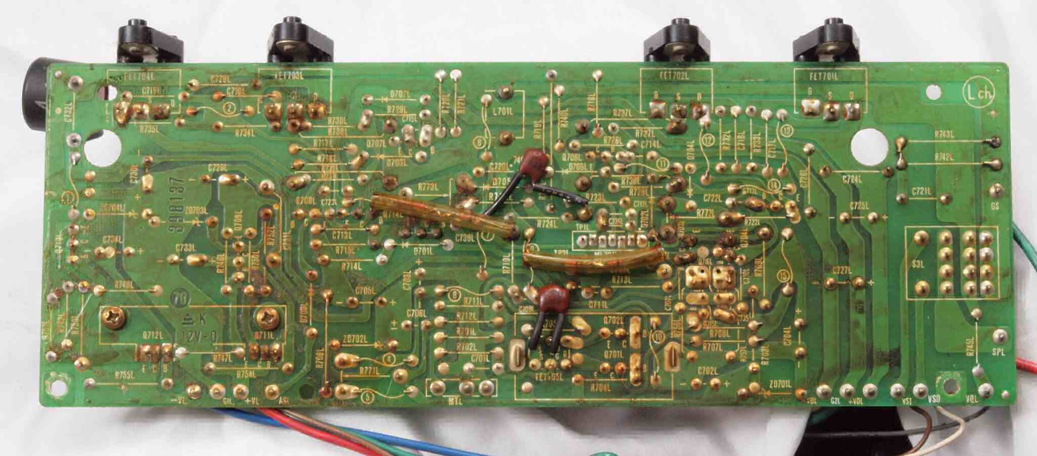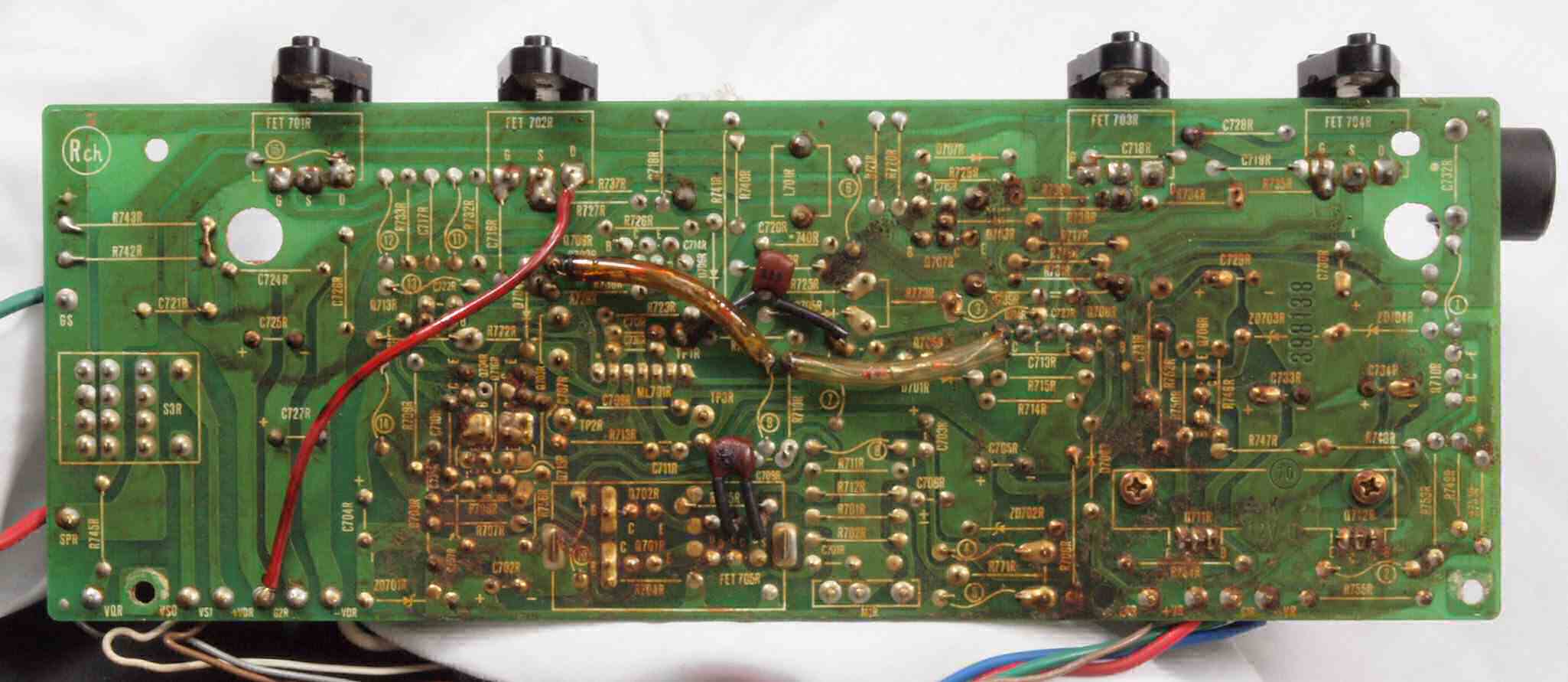 C15. 修理(半田補正)後 R側ドライブ基板裏 半田を全部やり直す。 普通はこれで完成。
