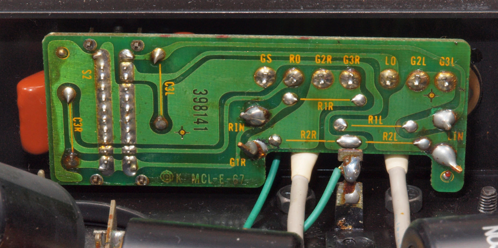 C74. 修理中 入力RCA端子基板裏 L側もW−SWにする為、基板改造。