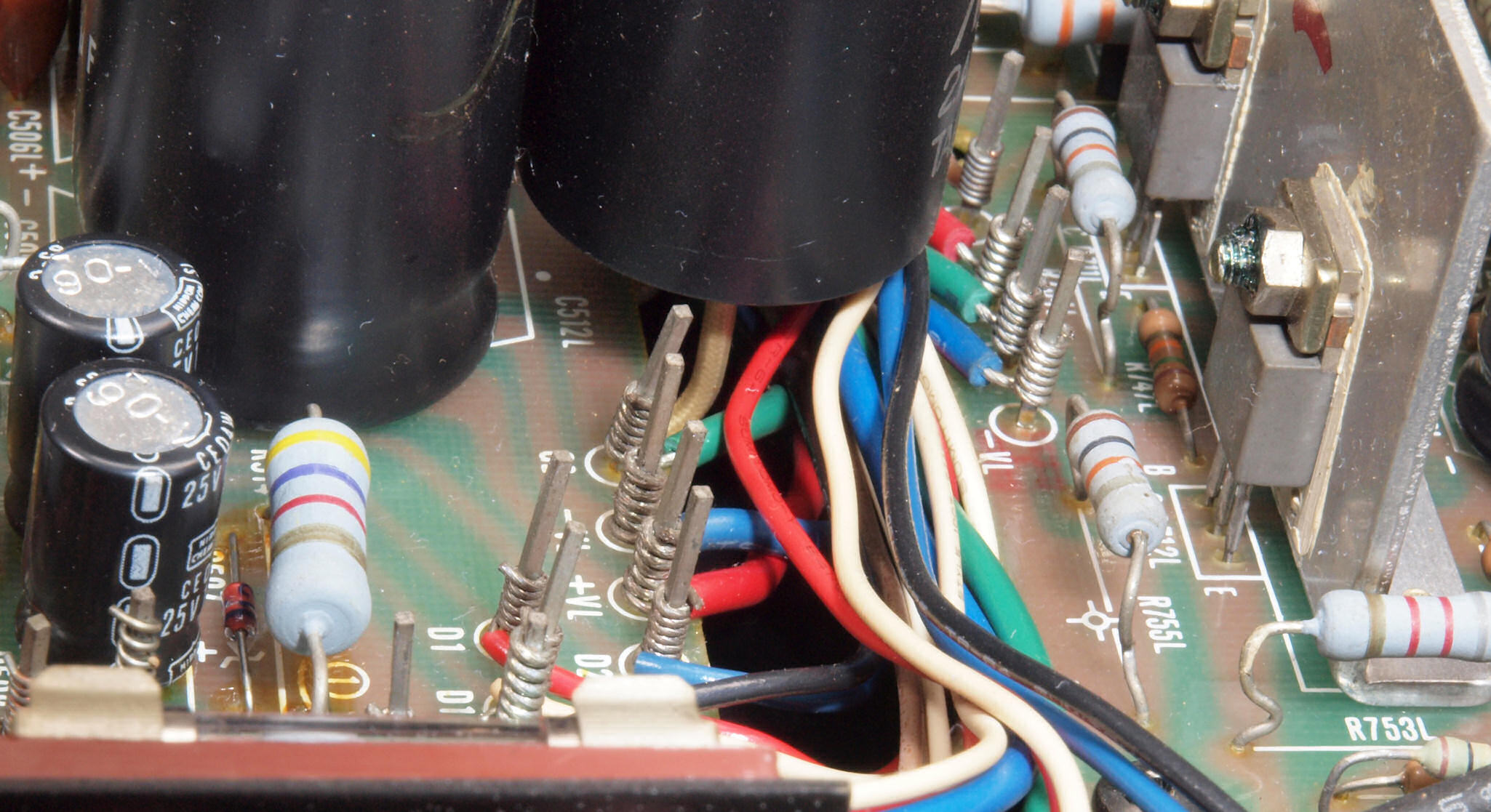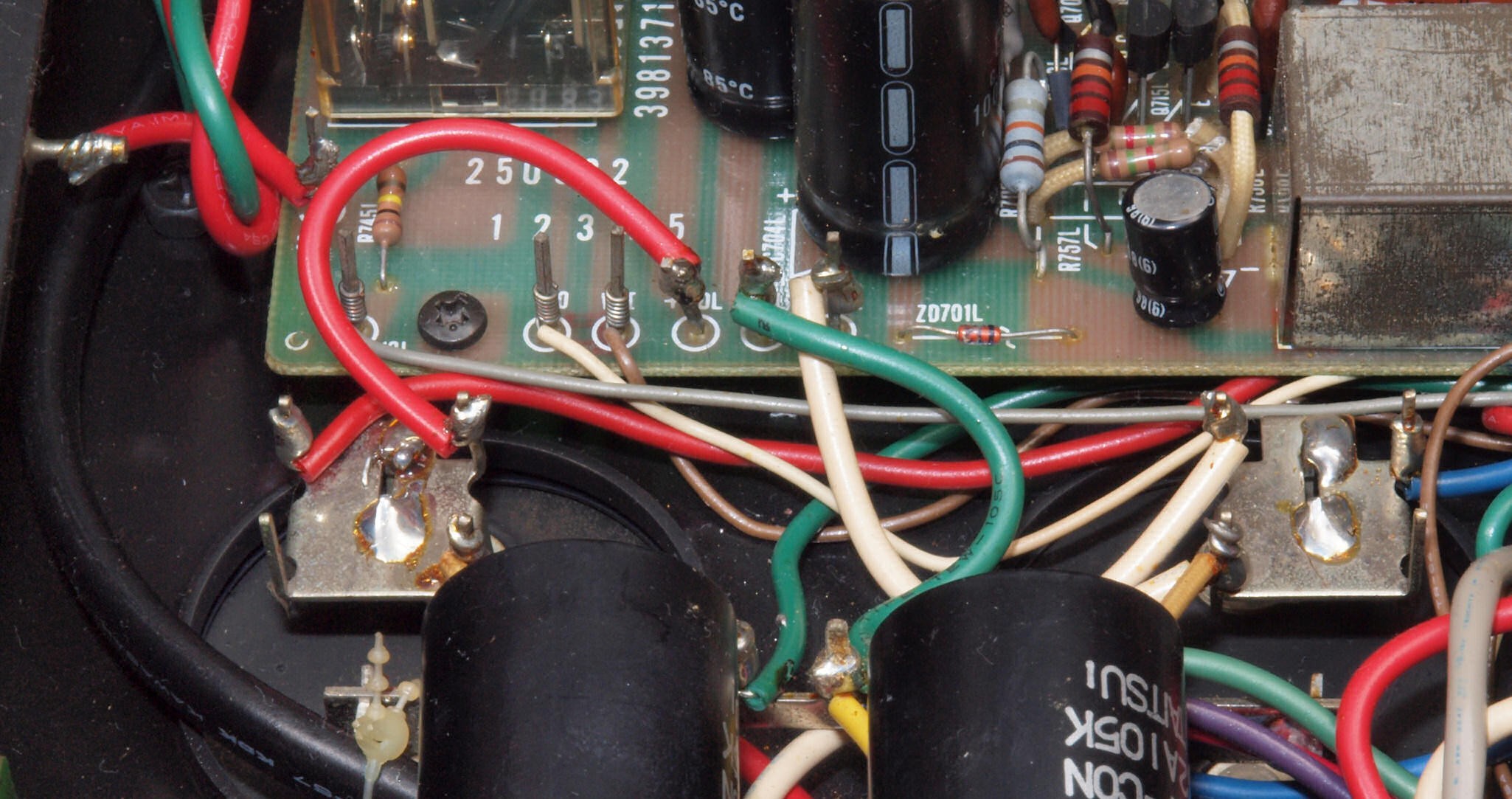 CC5. 修理前 R側ドライブ基板−電源基板へのラッピング線。