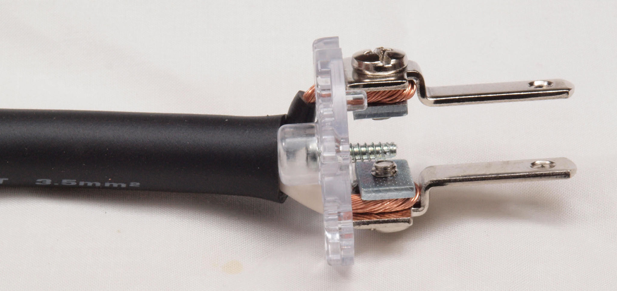 これで差し込み固定の3倍位接触面積が増し、接触抵抗が低くなる。