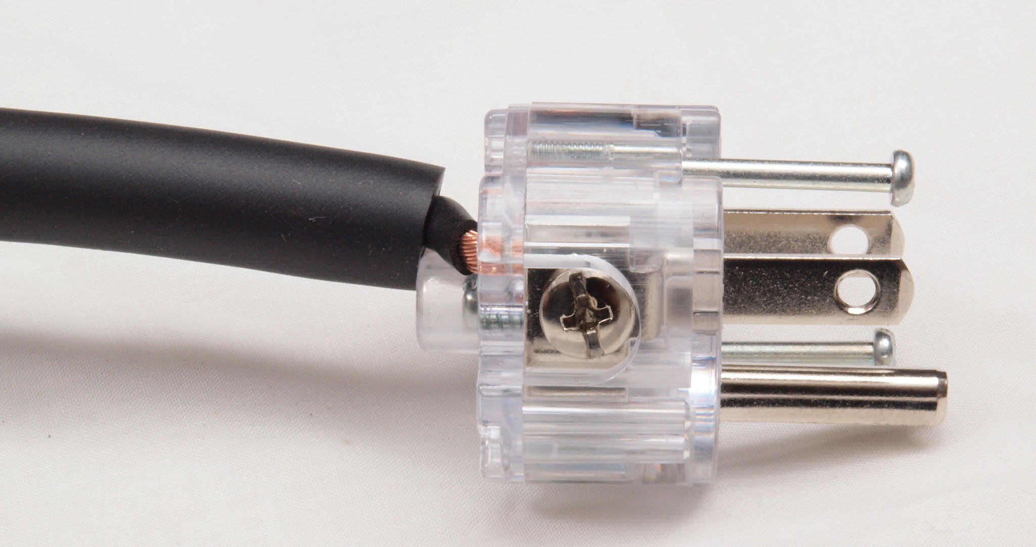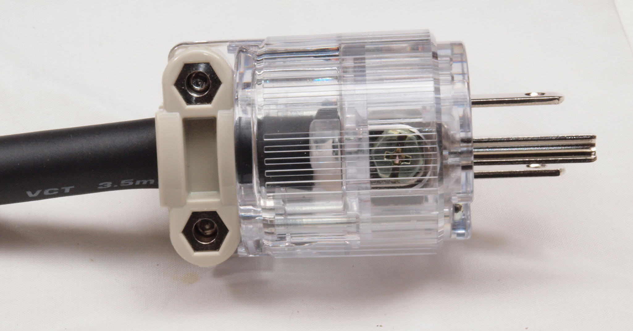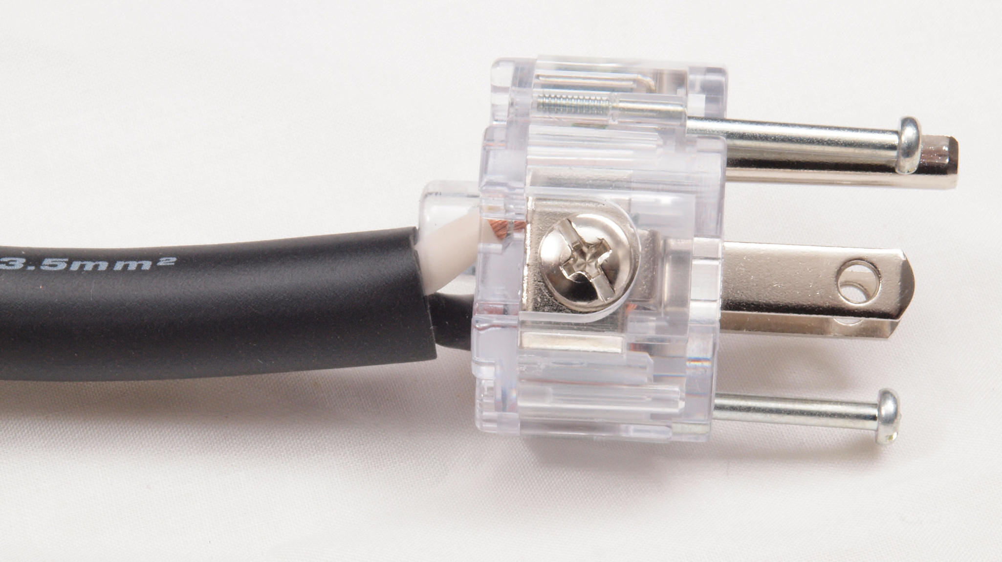 CBD. 完成 3Pプラグにケーブル取り付。 奥までしっかり芯線が入っている。