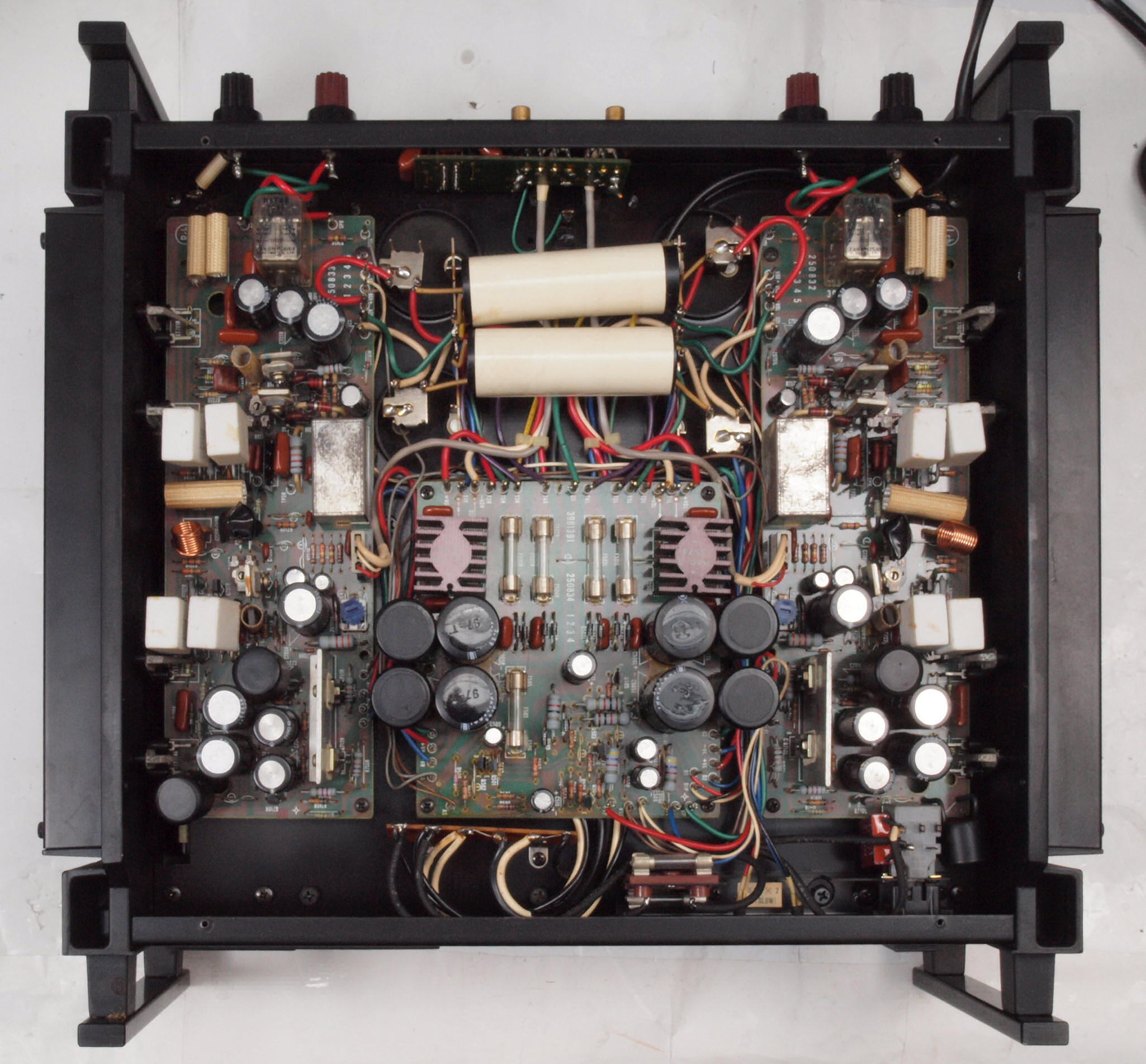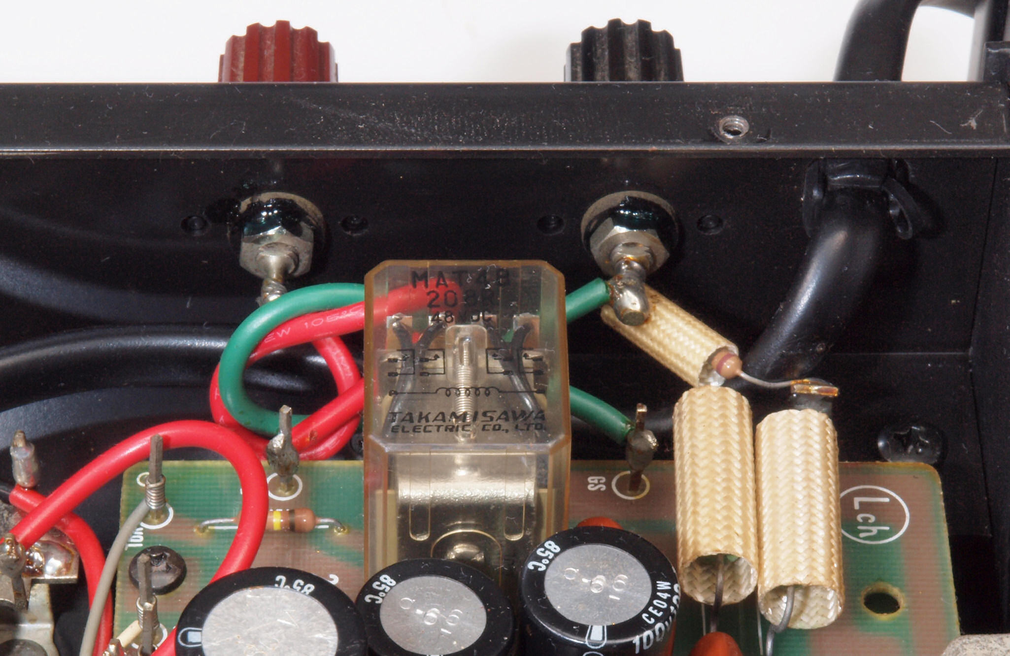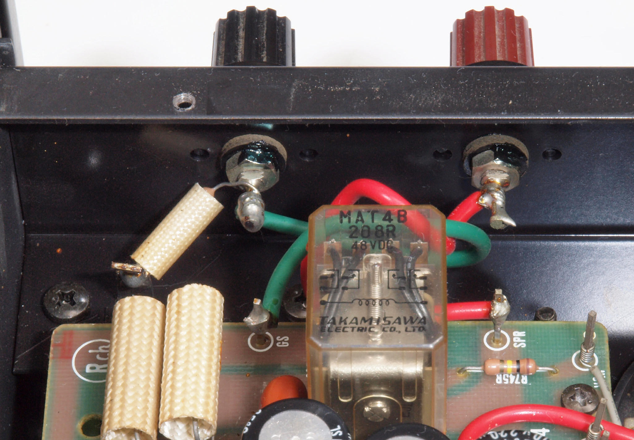 初段FET(電界効果トランジスター)、バランス・バイアス調整用半固定VR3個、SP接続リレー交換