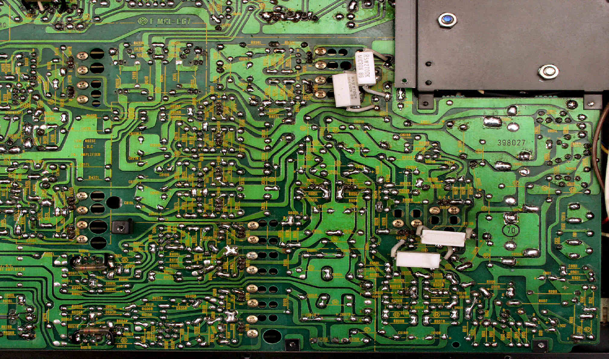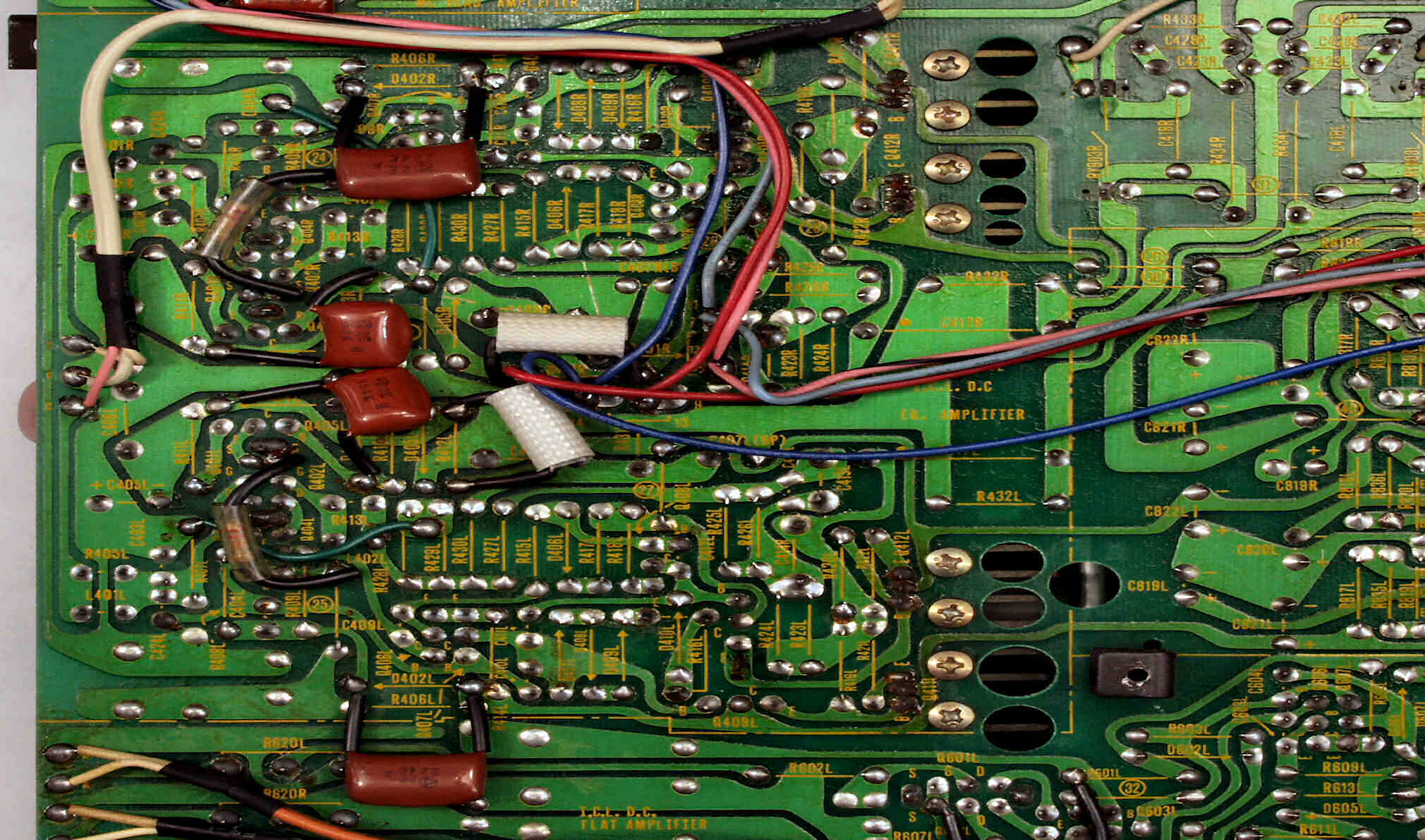 C4C. 修理前 EQ−AMP部基板裏。
