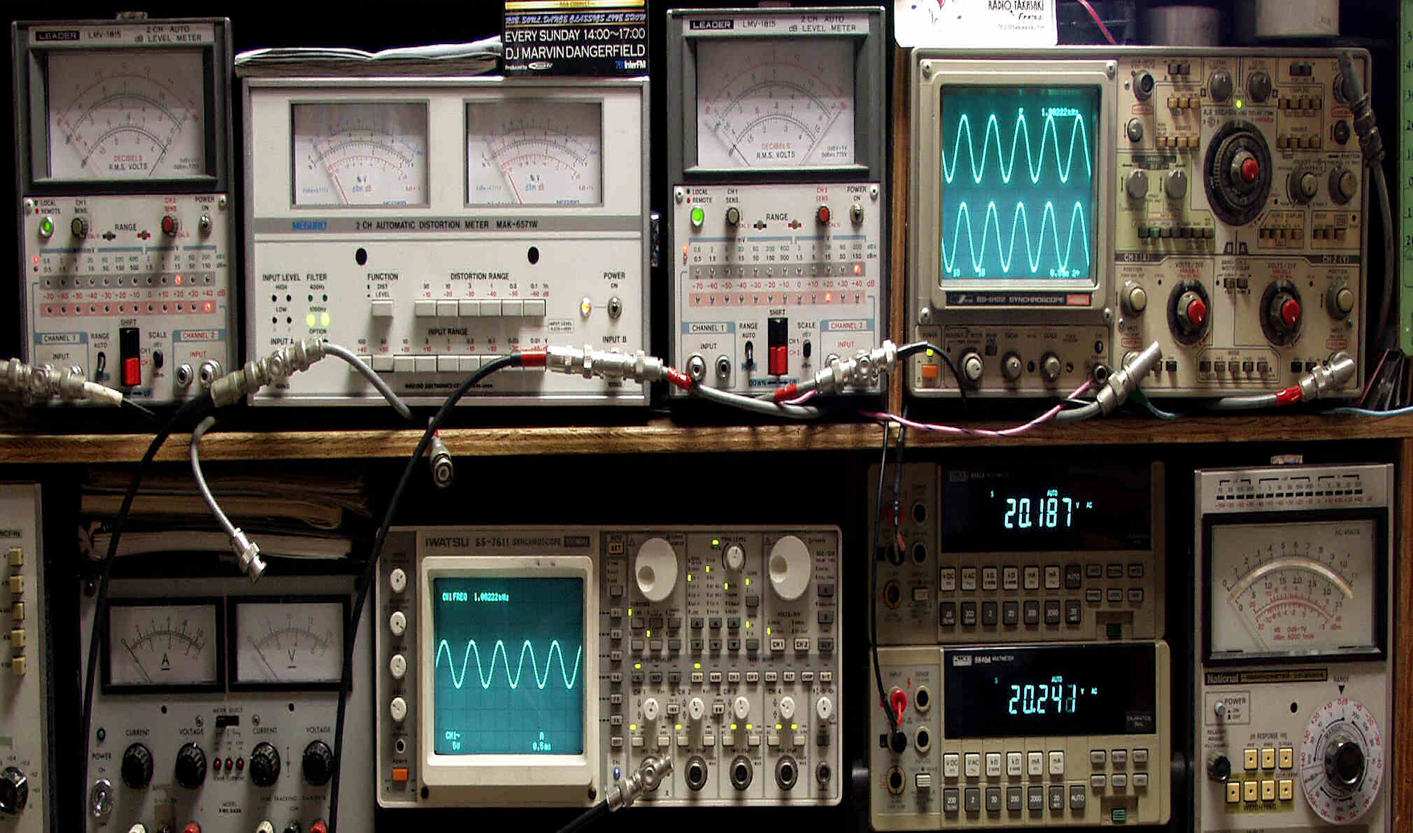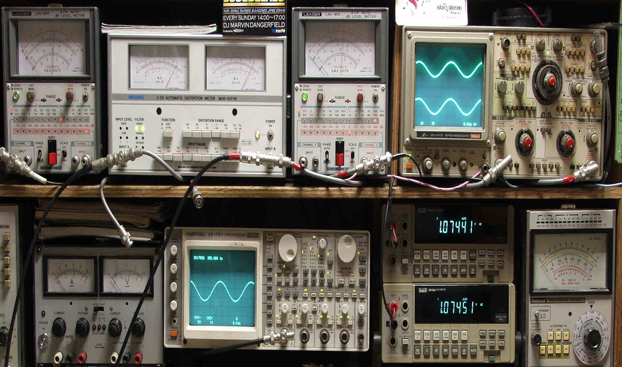 上段中左 歪み率計=出力の歪み率測定 左メータ=L出力、右メータ=R出力