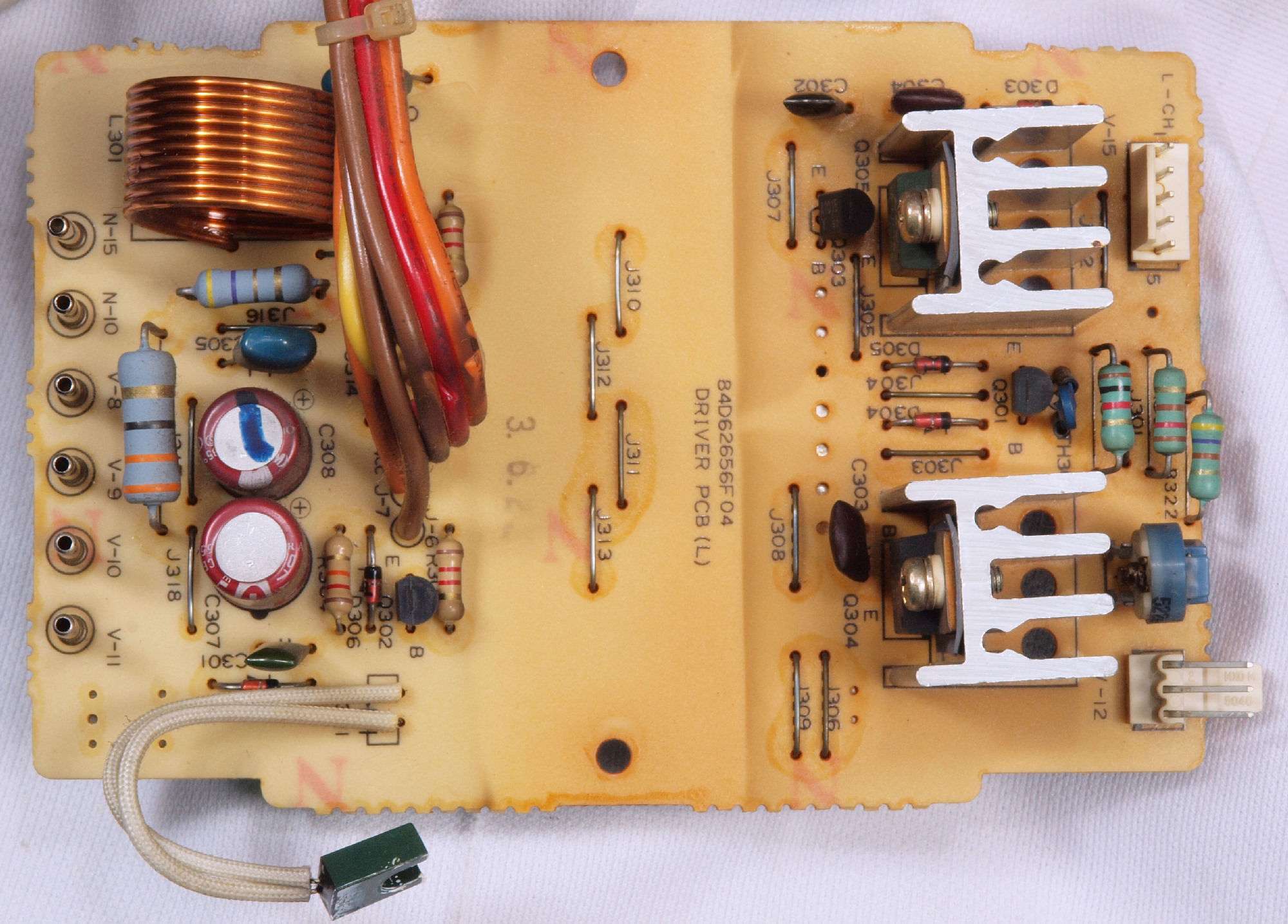 | CA1. 修理前 右側終段ドライブ基板。 | ||||||||||||||||||||||||||||||||||||||||||