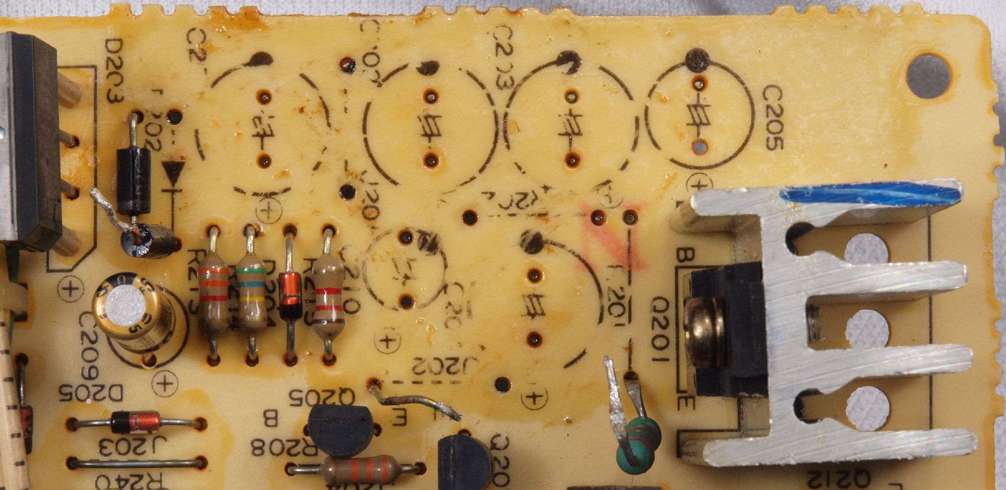 | CF1. 修理前 電源ブロック電解コンデンサー。 | ||||||||||||||||||||||||||||||||||||||||||