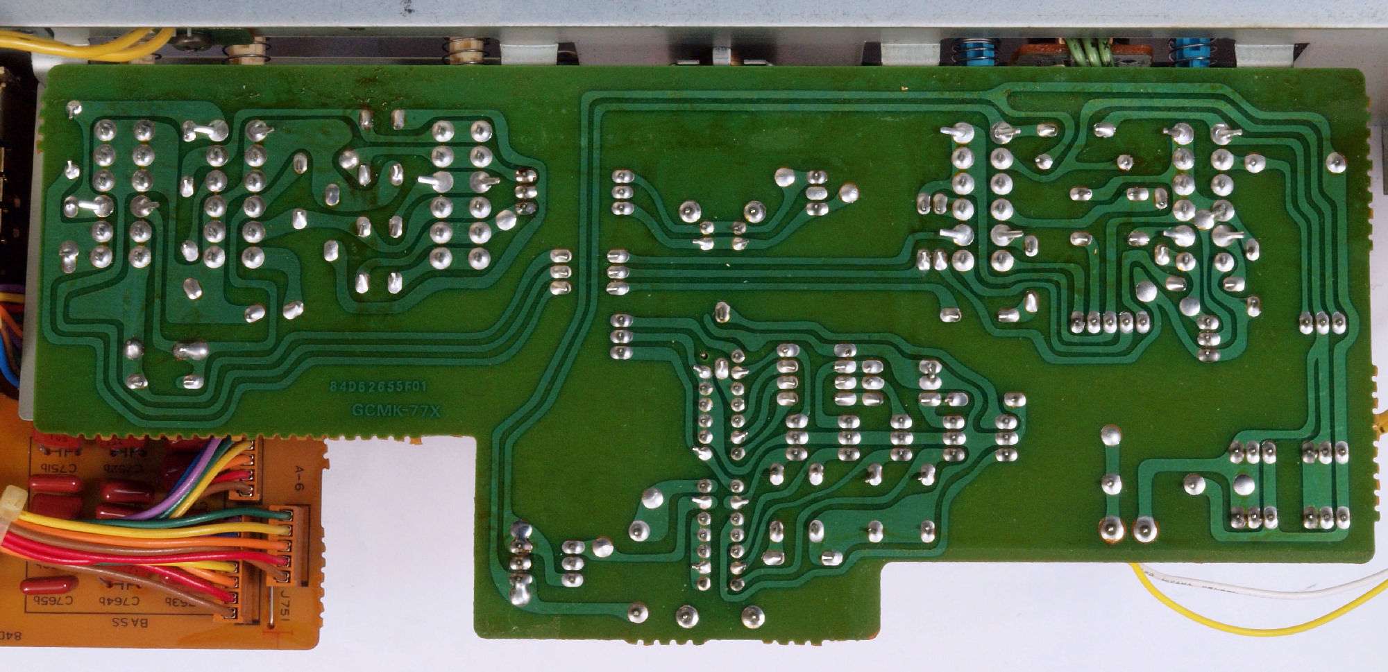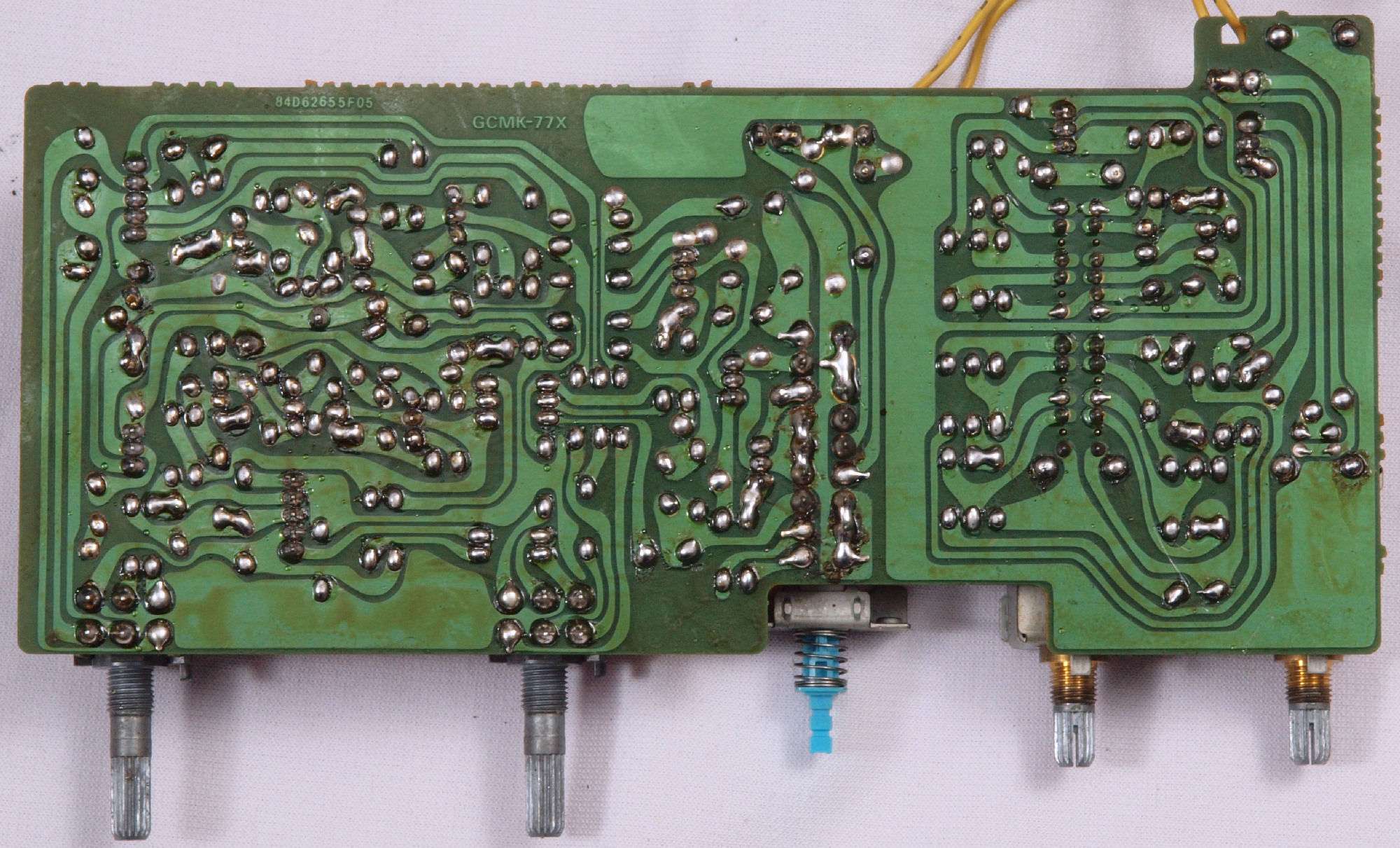 | C543. 修理前 TONE_VR、EQ_VR基板裏。 | ||||||||||||||||||||||||||||||||||||||||||