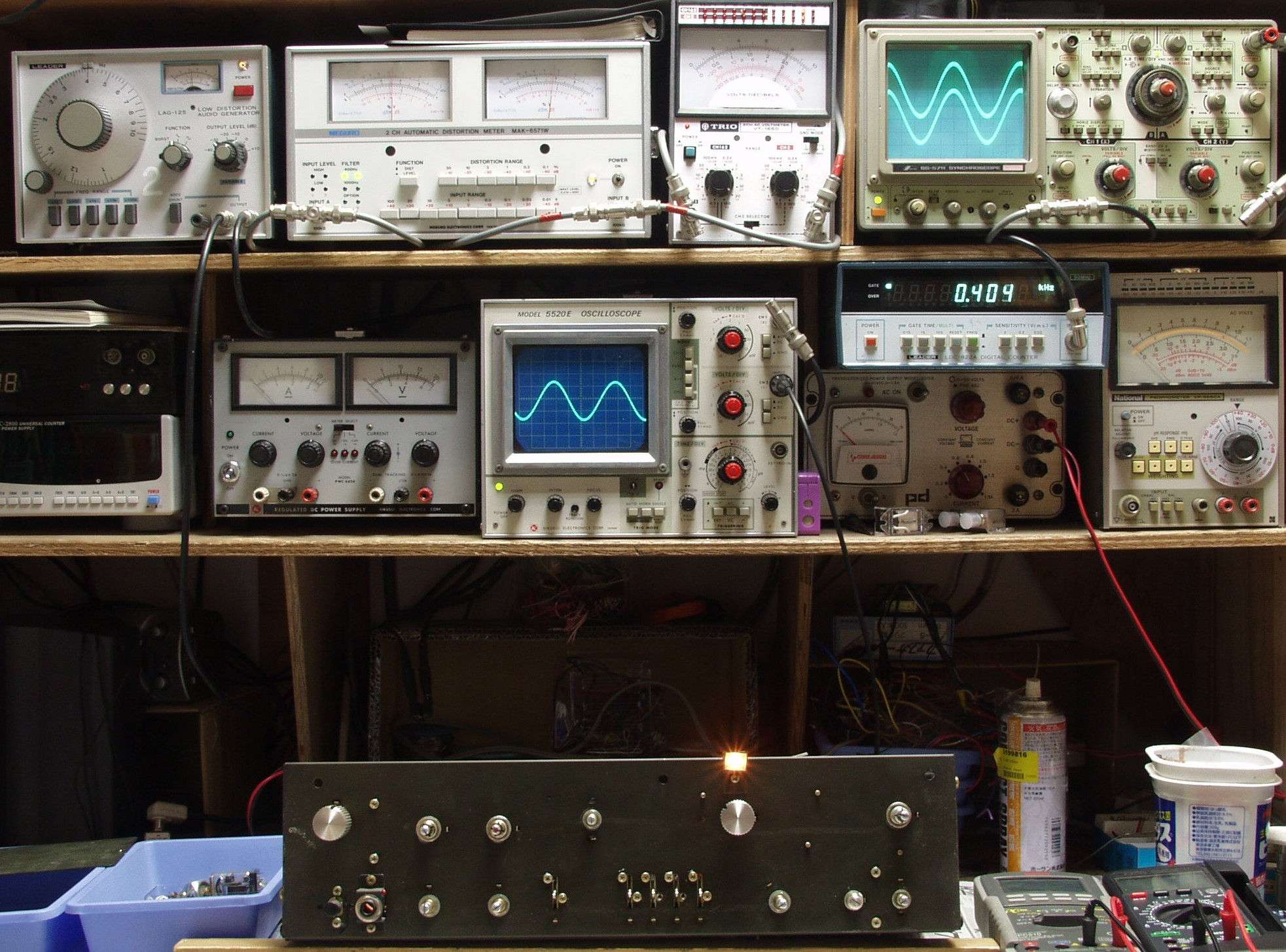 上左オーデオ発振器より400HZ・1KHZの信号を出す(歪み率=約0.003%)