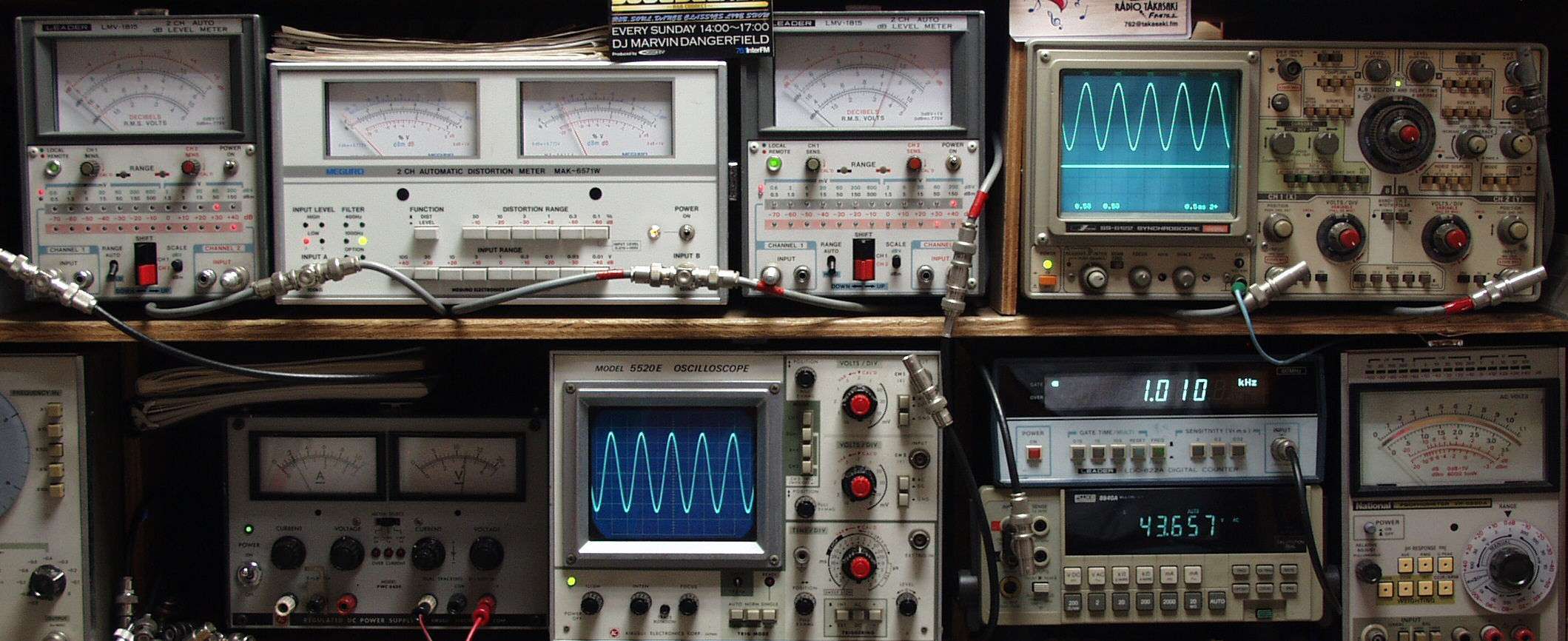上左オーディオ発振器より400HZ・1KHZの信号を出す(歪み率=約0.003%)
