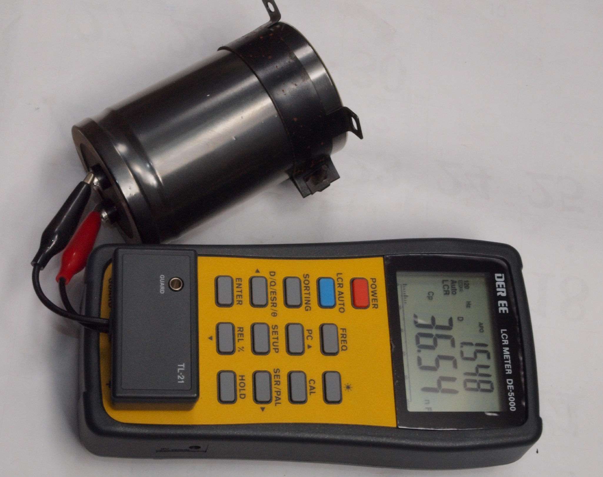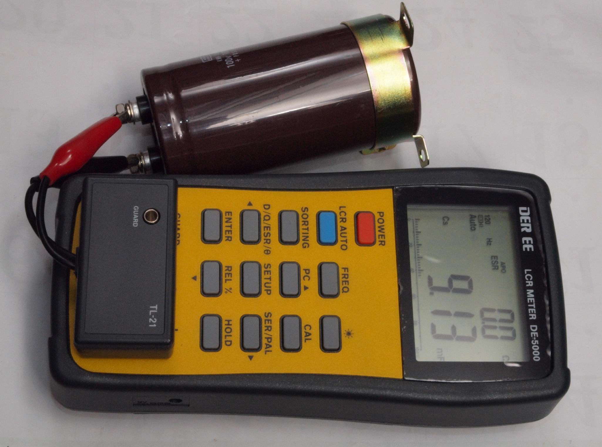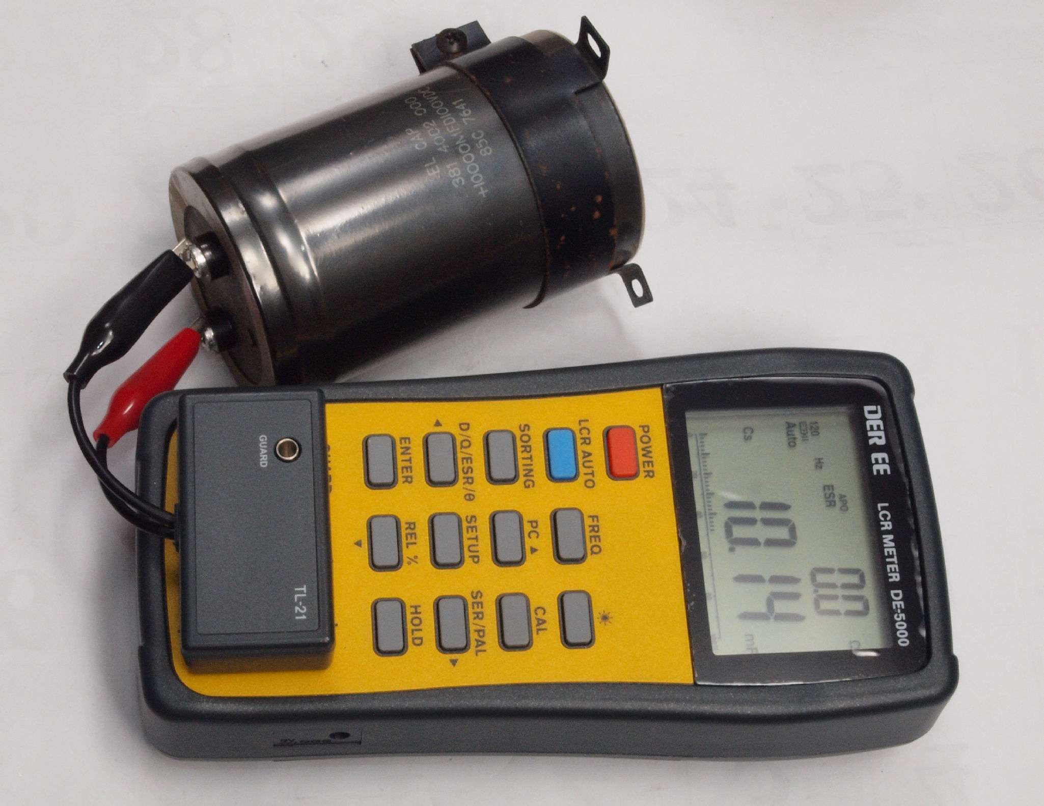 R21. 交換するブロック電解コンデンサー容量測定、9,130μF。ESR=0.0Ω。