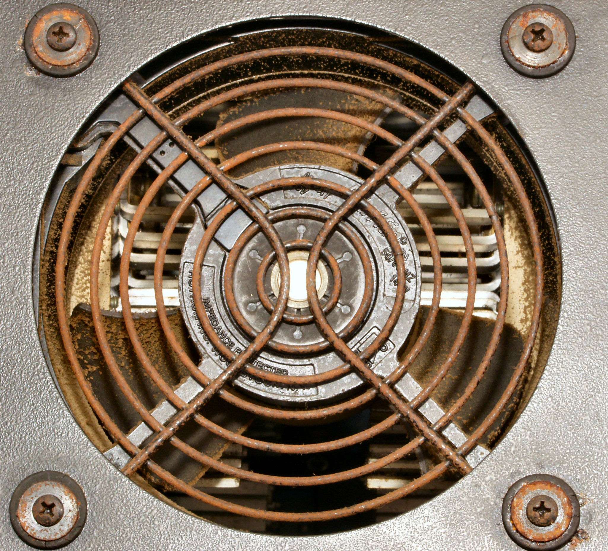 A3B. 点検中 L側放熱器埃、タバコのヤニで埃がへばりついている