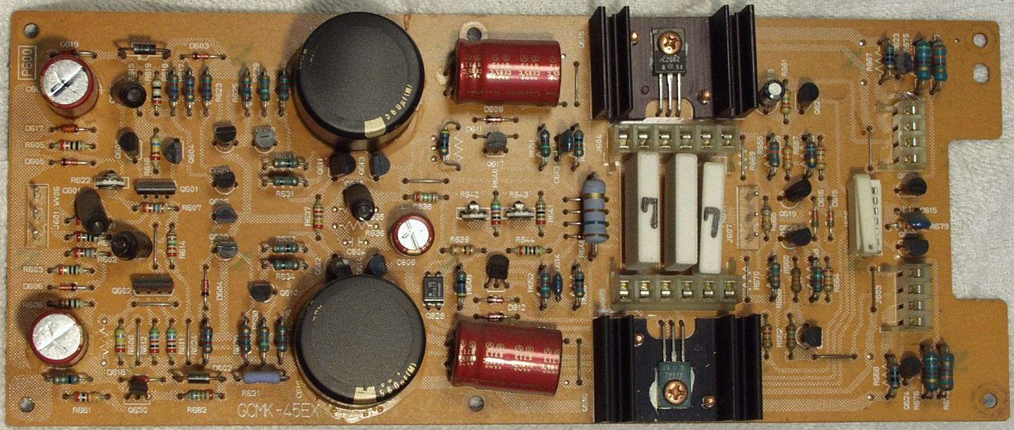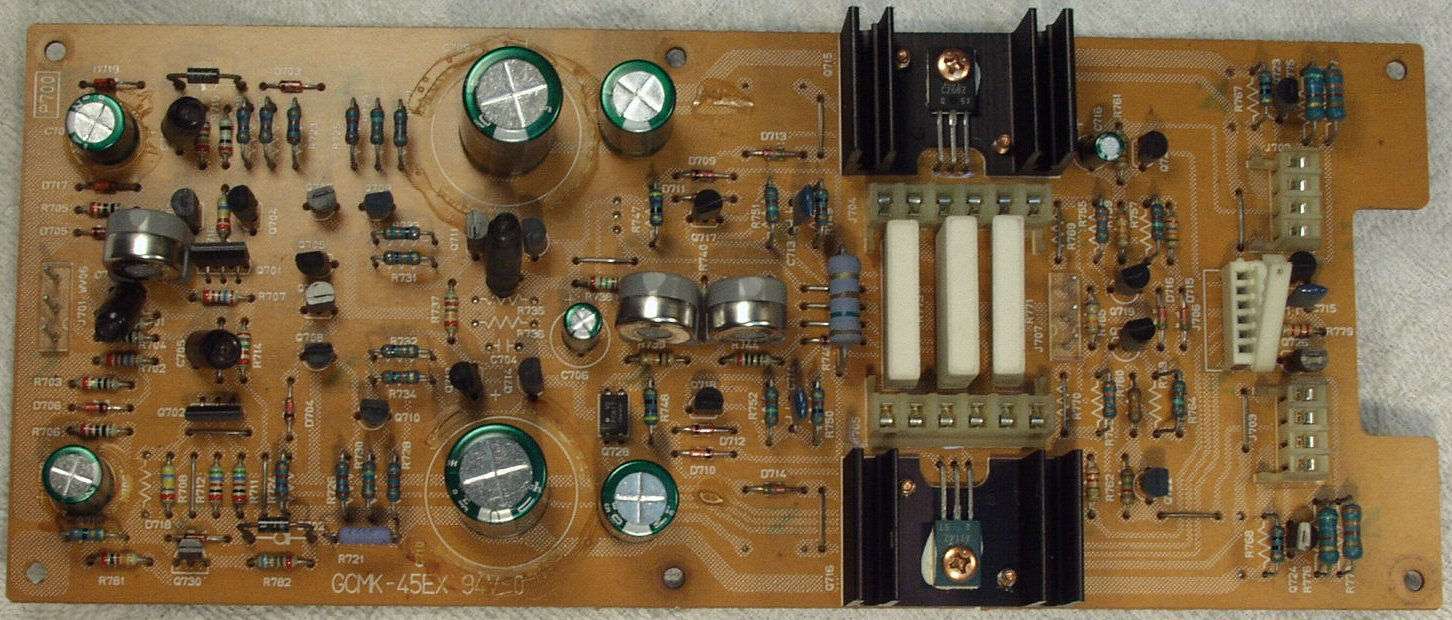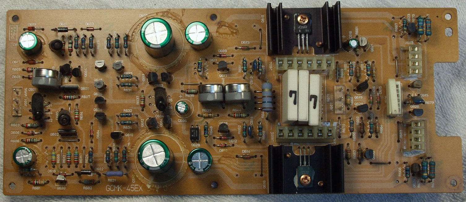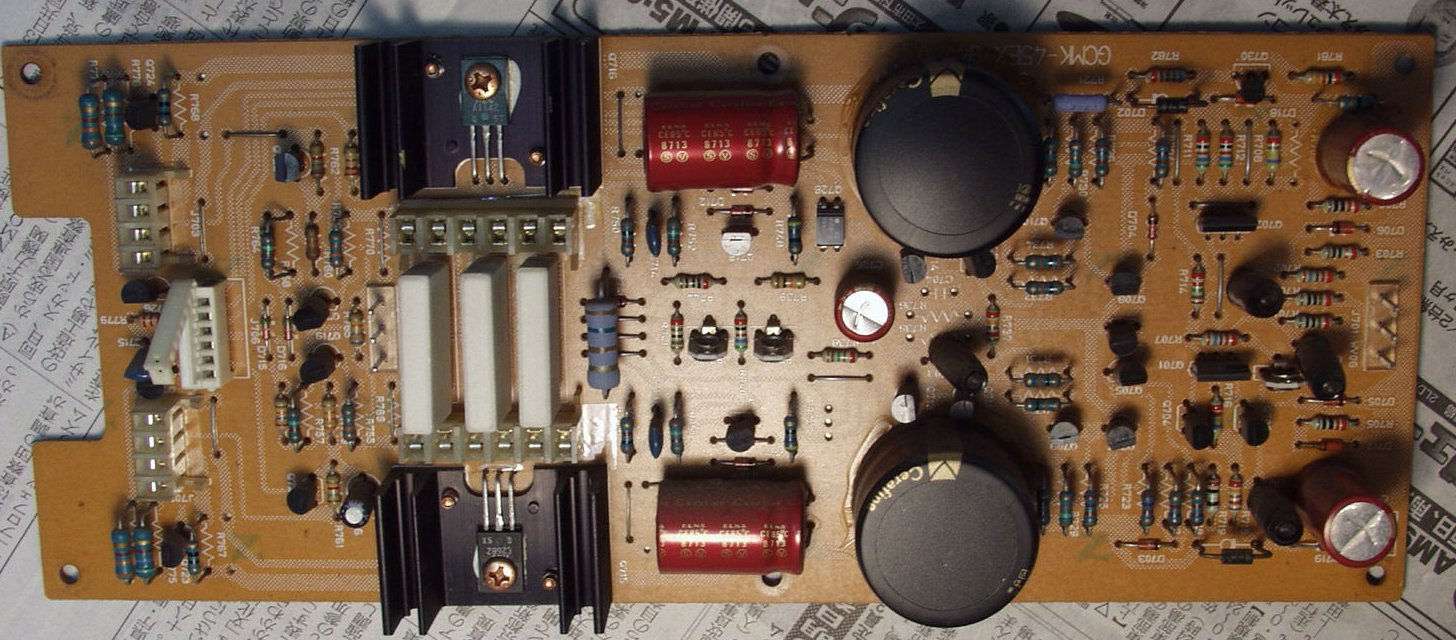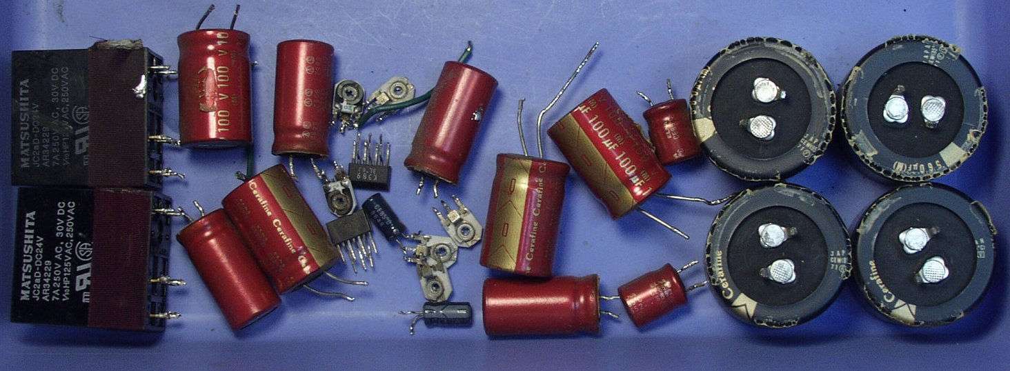 | A−1C. 修理前 ドライブAMP基盤 上の電解コンデンサーが、頭が膨らんで居るのが解ります | ||||||||||||||||||||||||||||||||||||||