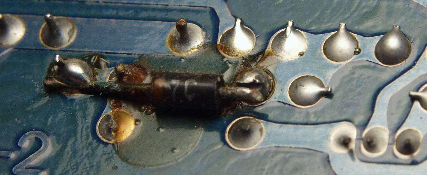| C−2H. 修理前 L終段TR(トランジスター)基板 裏 半田不良場所 | ||||||||||||||||||||||||||||||||||||||