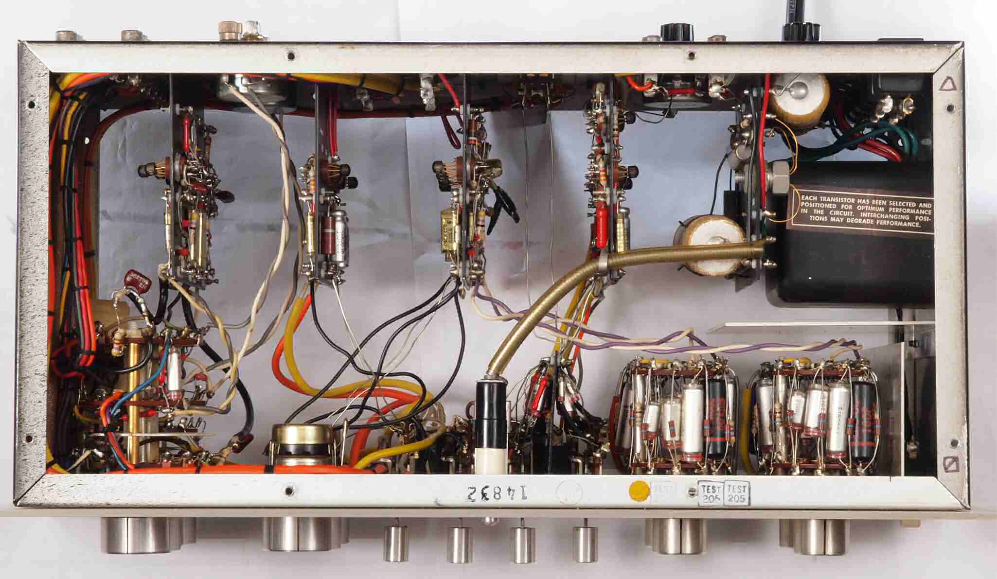 | C14. 修理後 Low_Level Amplifier Bord Back。フイルムコンデンサー2個交換、フイルムコンデンサー2個追加。 | ||||||||||||||||||
