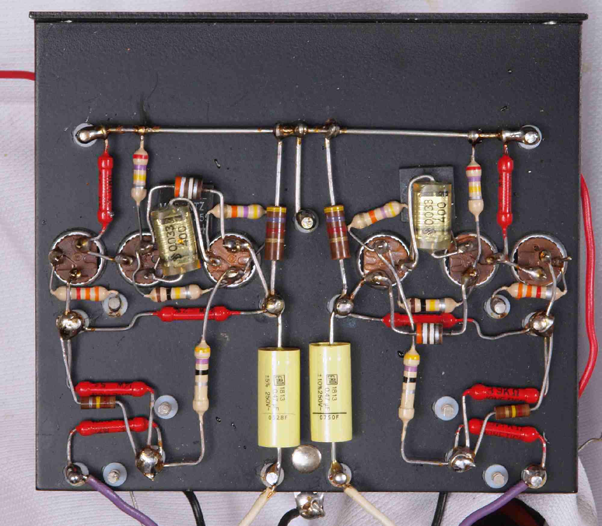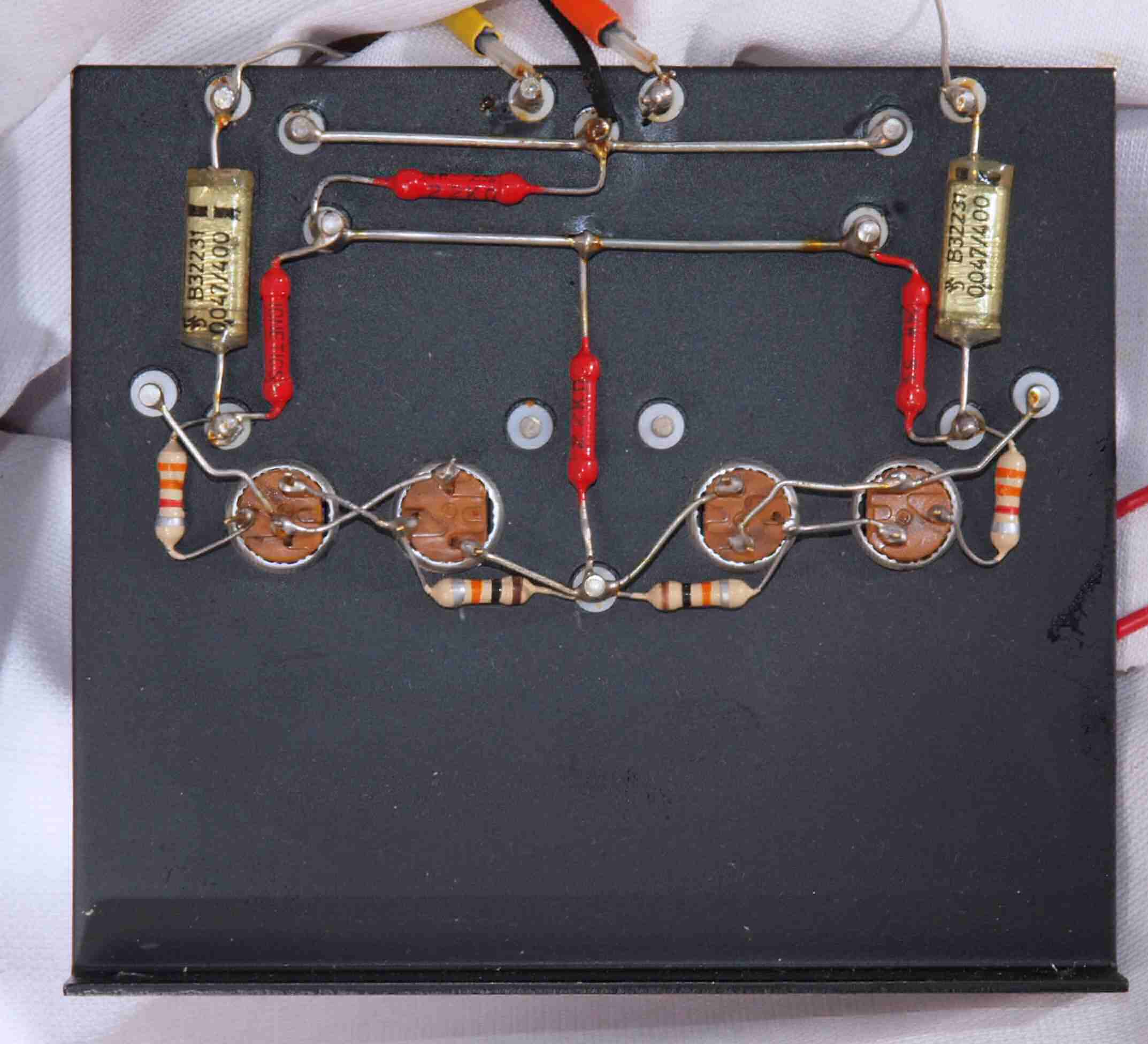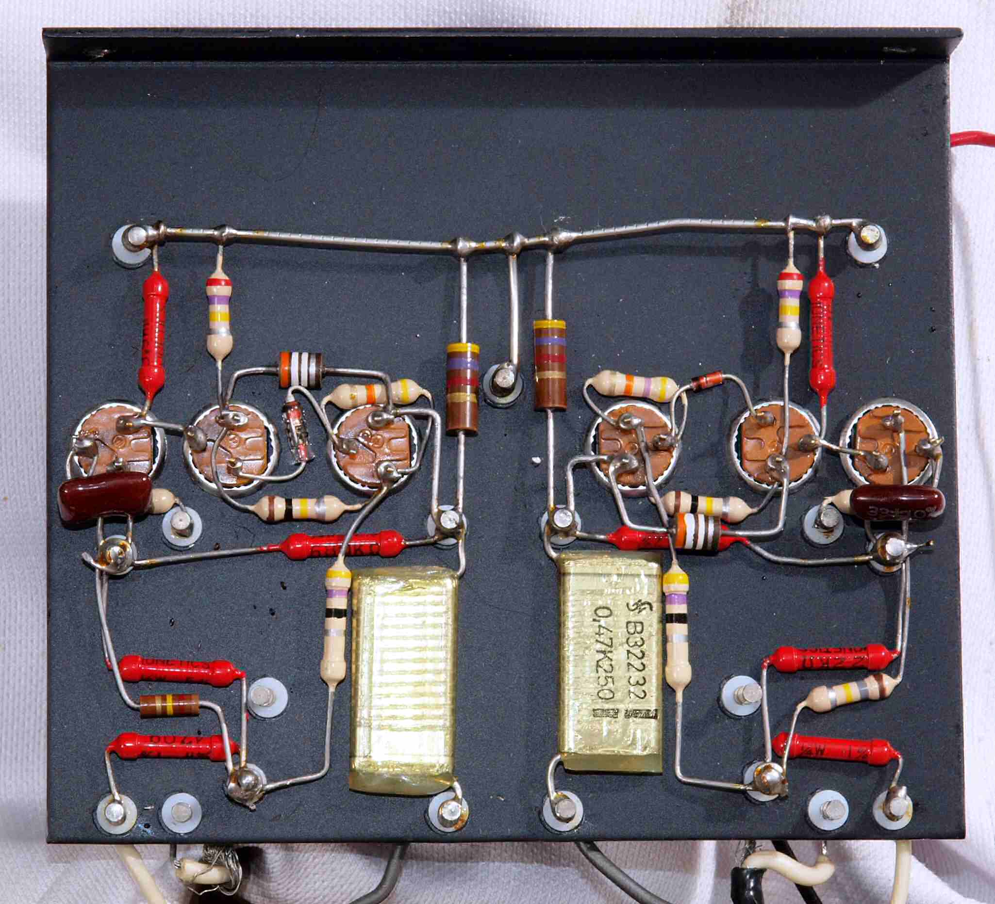 | C34. 修理後 Tone Amplifier Bord Back。 フイルムコンデンサー2個交換。 |