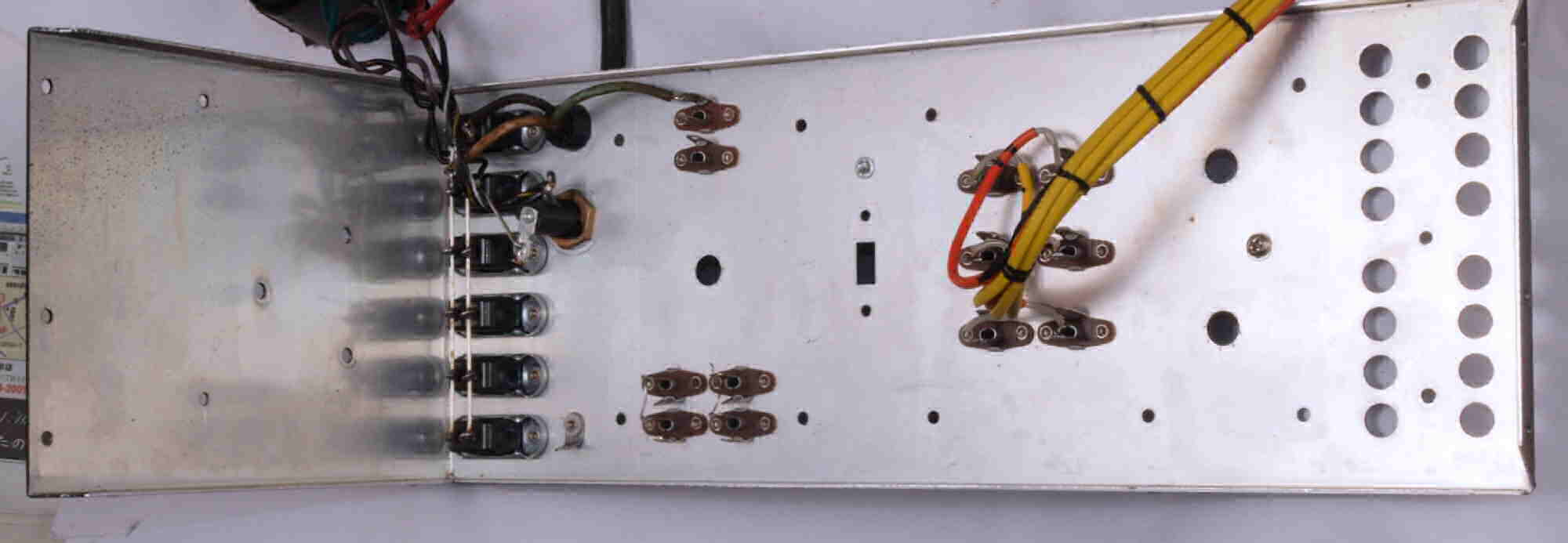 | A56. 点検中 入力RCA端子郡、 小型の物は、取り付け穴が大きく締結面積が少ないので取り付け不可。 |