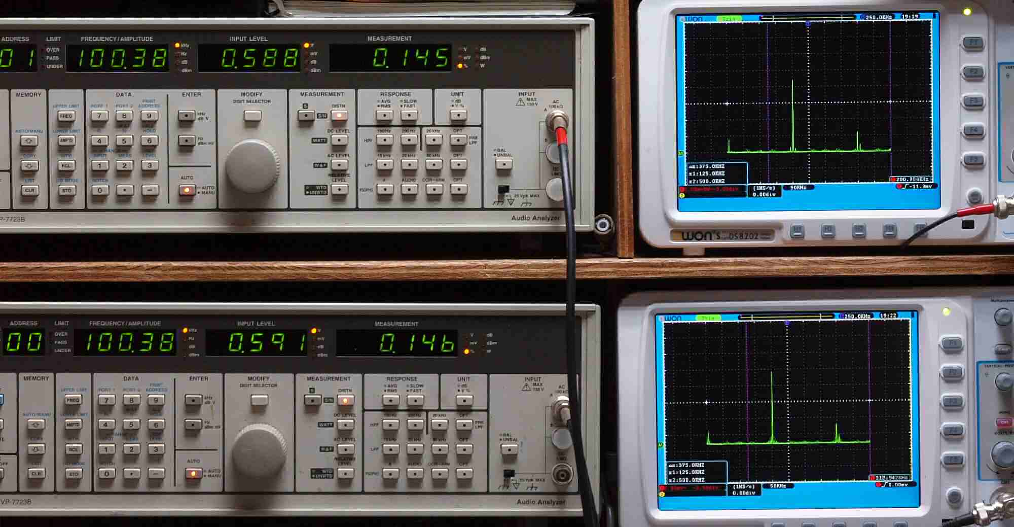 | F. 上位測定器による 調整・測定 F1. 下のオーディオアナライザー VP−7732Aで自動測定。 |