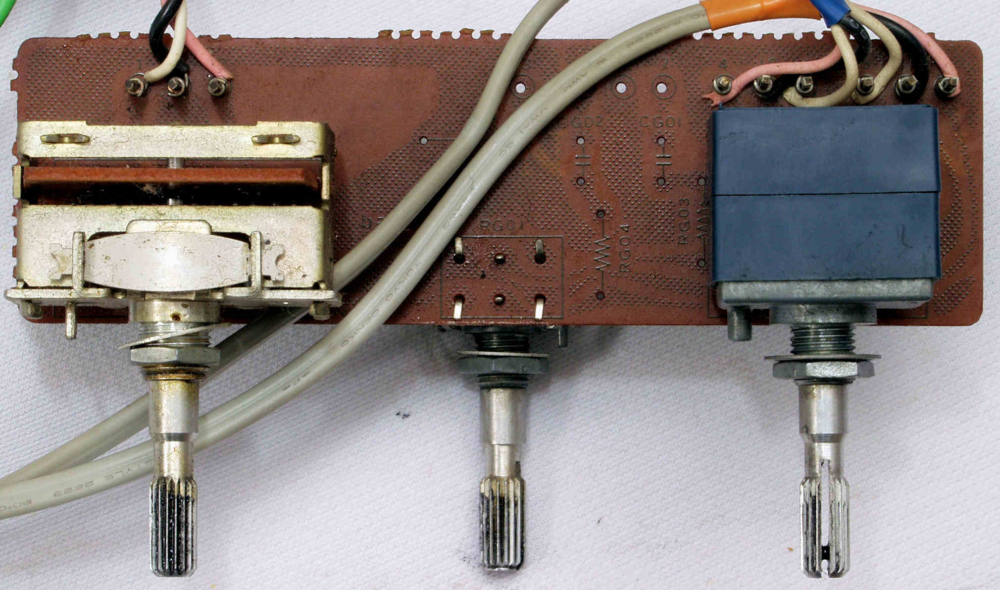 | C67. 完成MainVolume・BalanceVR・ModeSW基板裏、コート液を塗り、乾燥後。 | ||||||||||||||||||||||||||||||||||