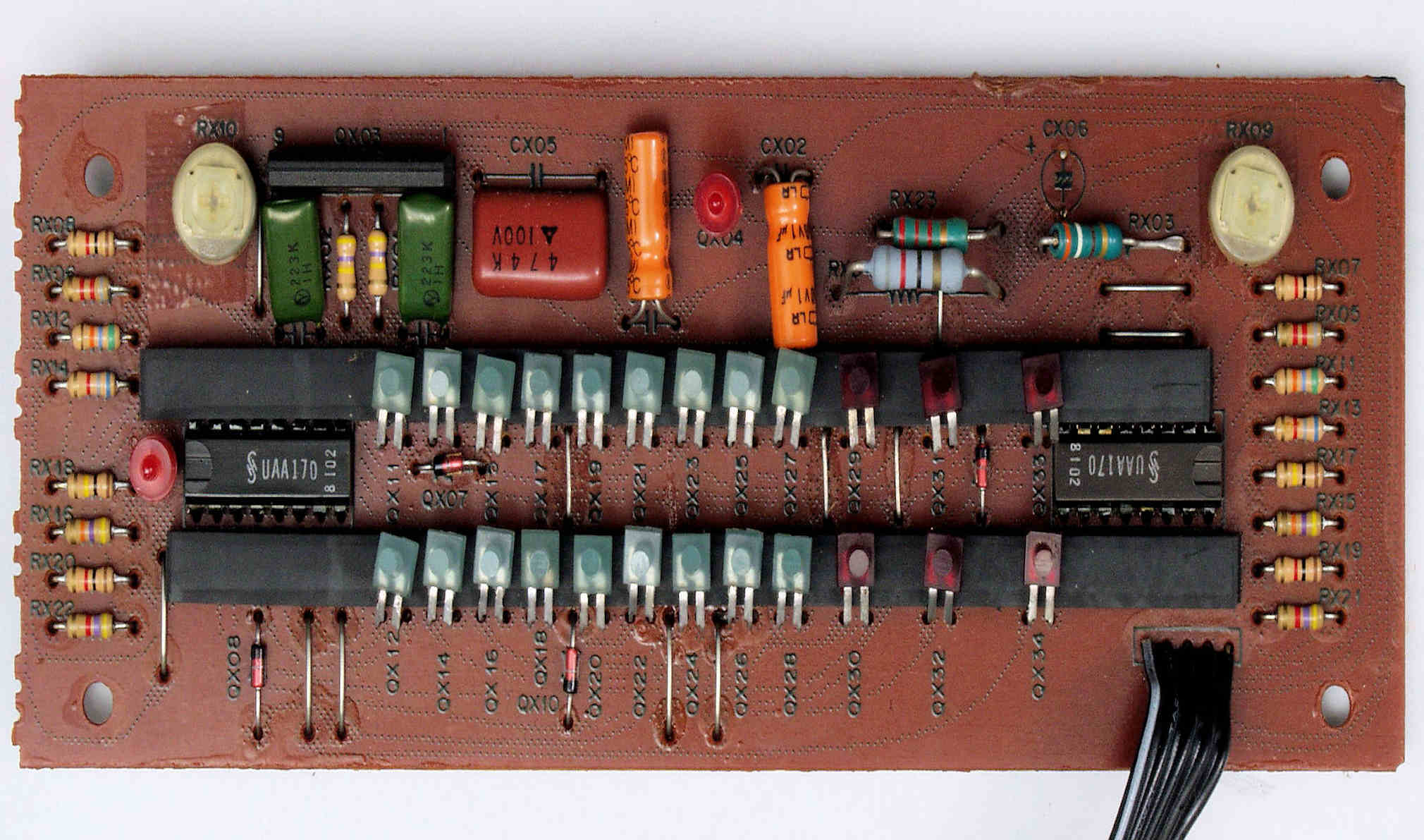 | CB2. 修理後 EQ・AMP・TR(トランジスター)基板、コート液を塗り、乾燥後。 | ||||||||||||||||||||||||||||||||||