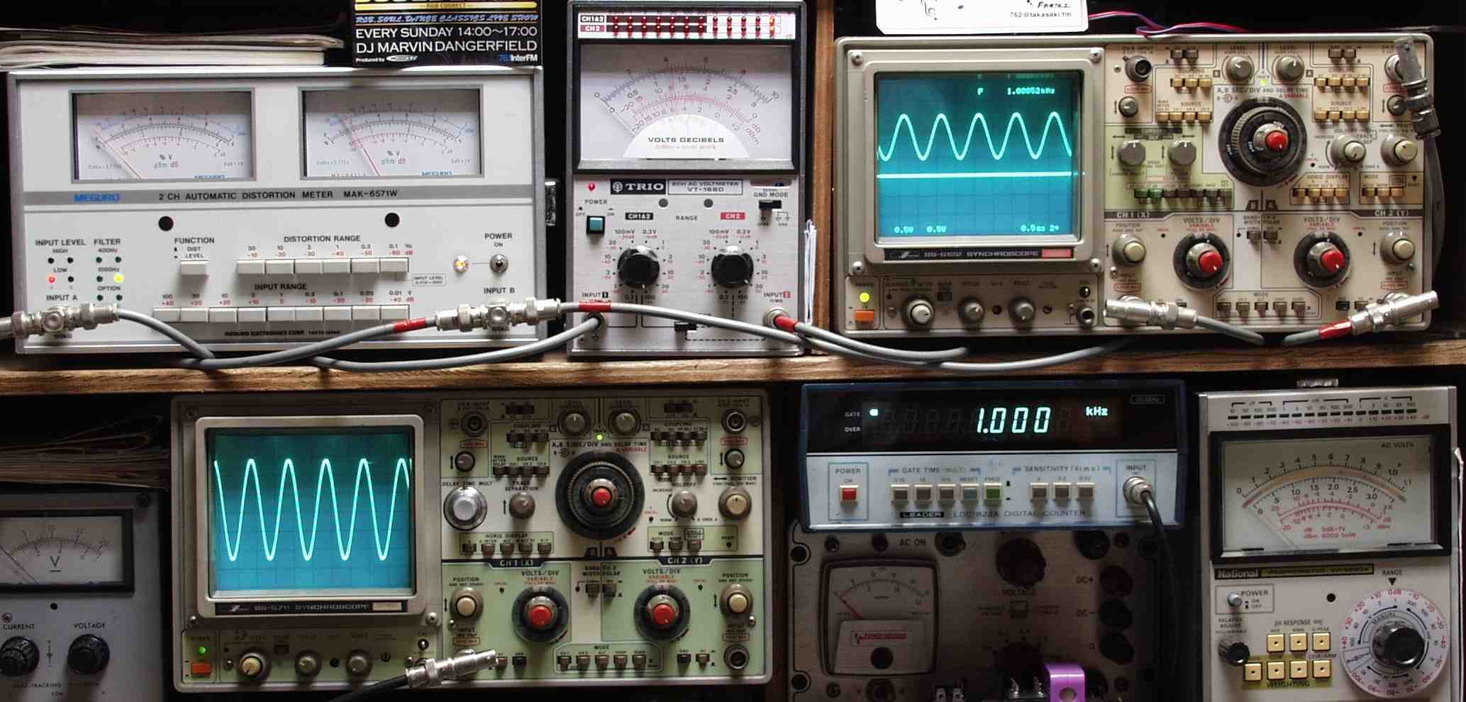 下左オーデオ発振器より400HZ・1KHZの信号を出す(歪み率=約0.003%)