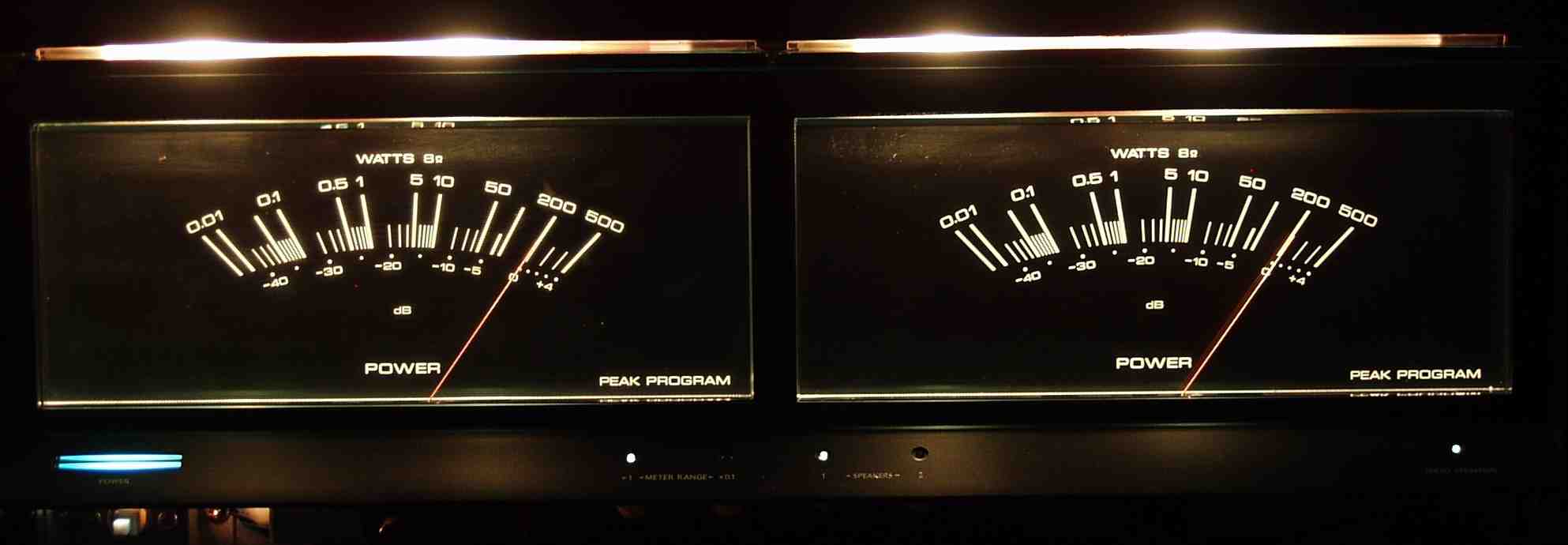 上中=SP出力電圧測定器、赤針=R出力、黒針=L出力