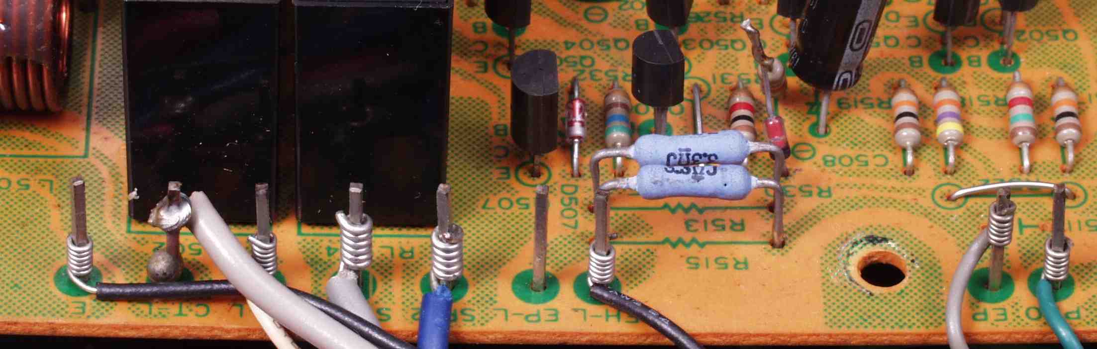 C31. 修理前 R側終段TR(トランジスター)基盤。