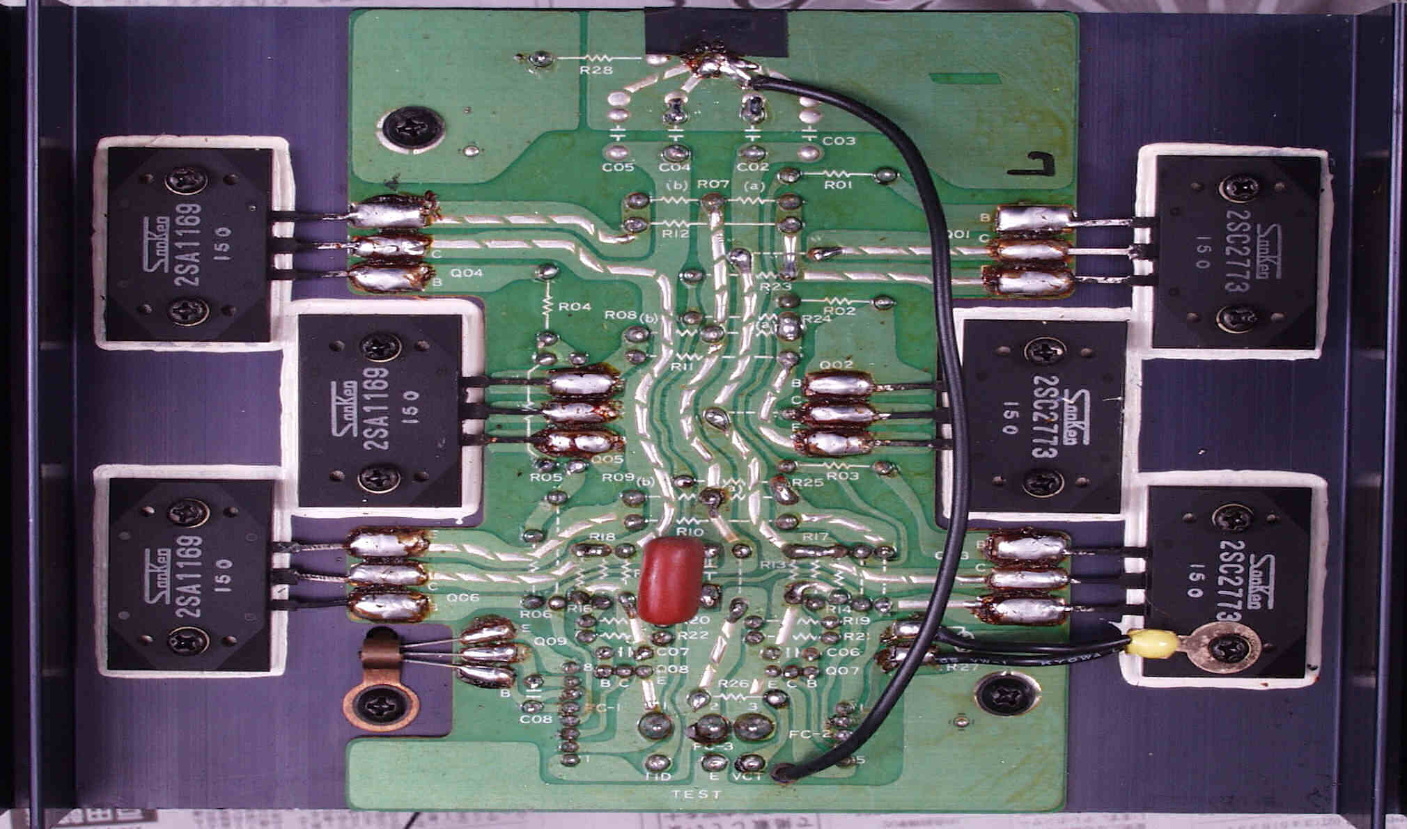 C42. 修理(半田補正)後 L側終段TR(トランジスター)基盤。